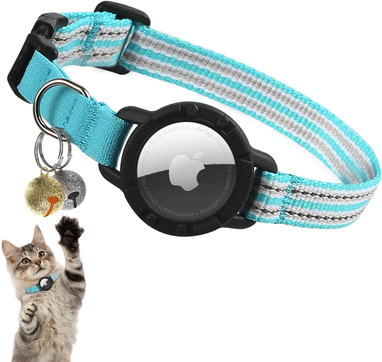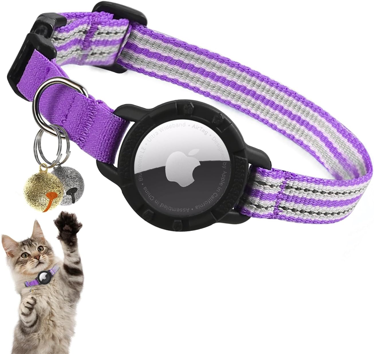 Нашийник за котки Airtag, Светлоотразителни нашийници за котки с държач за етикет Apple Air Tag, Лек еластичен предпазен нашийник за котки, Нашийник за проследяване за котки, котенца и кученца