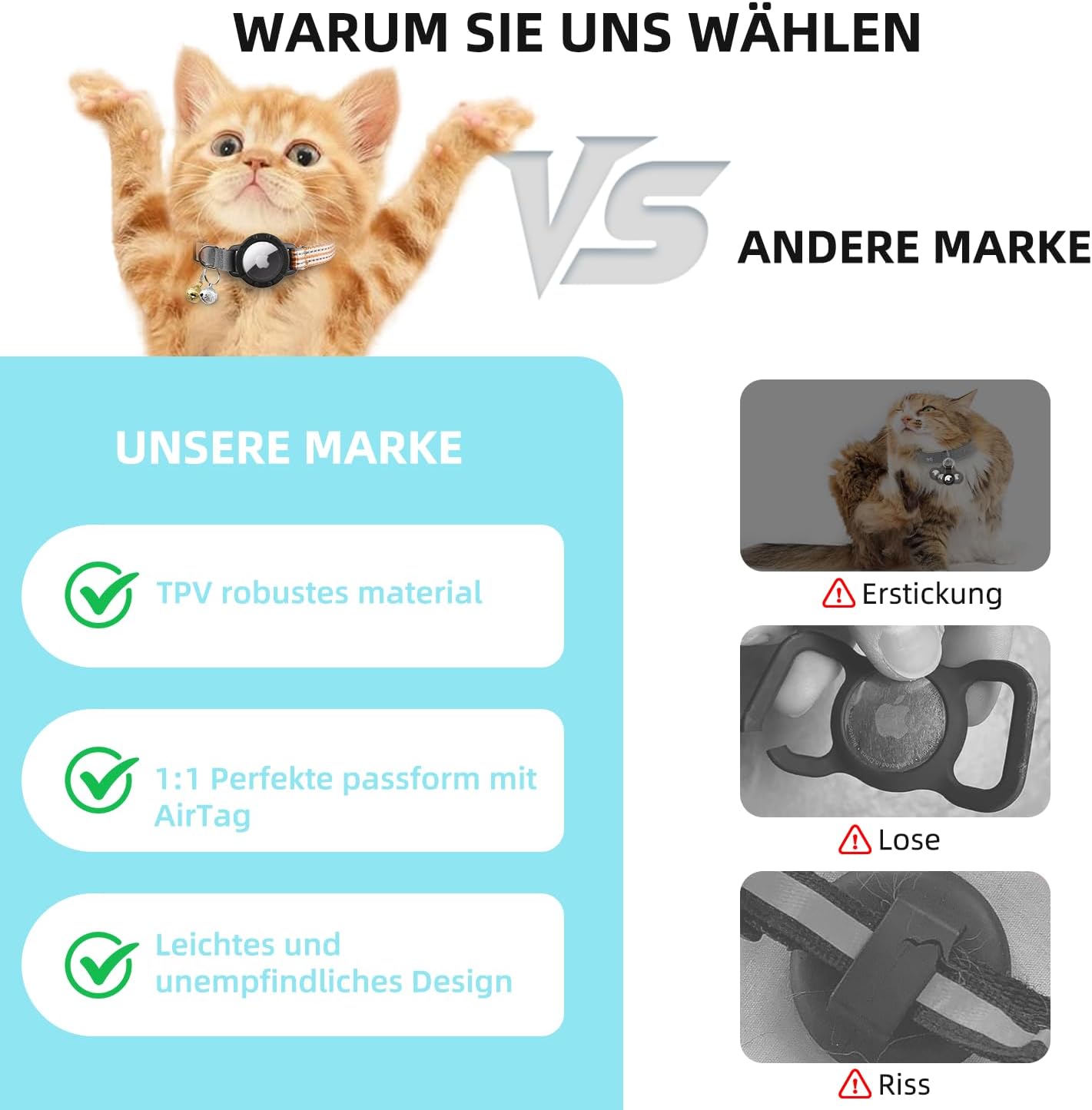 • ПЕРФЕКТНИЯТ ПОДАРЪК ЗА ВАШАТА КОТКА: Нашийникът за проследяване на котки се предлага с 30-дневна гаранция и първокласно обслужване на клиентите. Ако имате въпроси, не се колебайте да се свържете с нас. Съдържание на подаръка: 1 x нашляк AirTag, 1 x подвижен звънец.