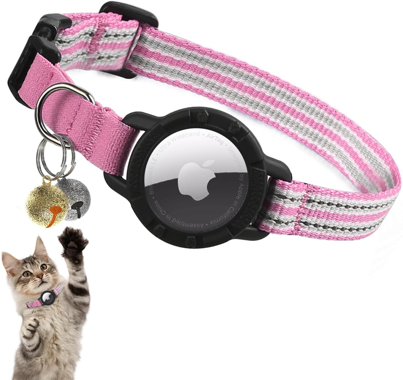 • СВЕТЛООТРАЖИТЕЛЕН ДИЗАЙН ЗА ПОВЕЧЕ БЕЗОПАСНОСТ Държачът за котешката каишка AirTag е проектиран с две светлоотразителни ленти, за да може котето ви да бъде ясно видимо дори при условия на слаба светлина. През нощта можете лесно да разпознаете домашния си любимец и да осигурите неговата безопасност.