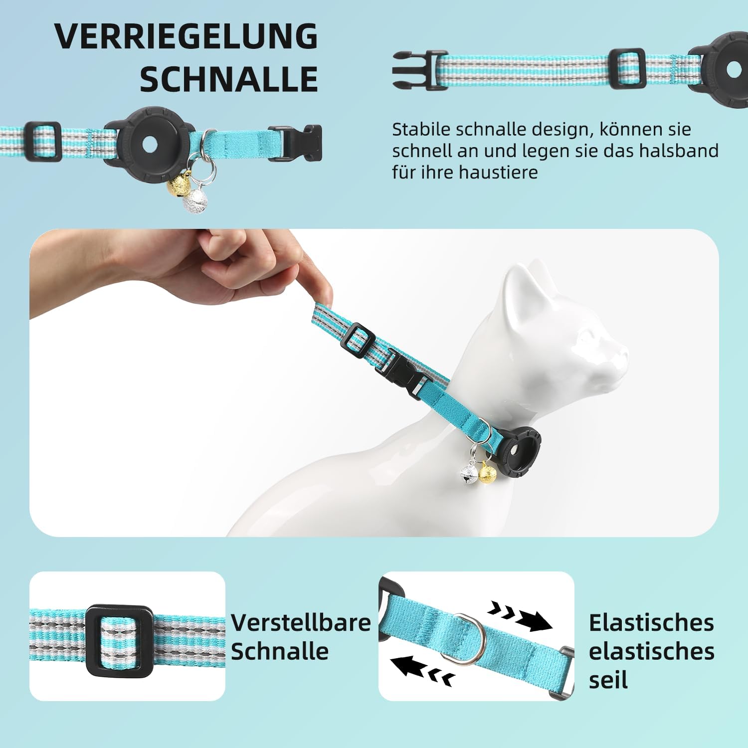 Нашийник за котки Airtag, Светлоотразителни нашийници за котки с държач за етикет Apple Air Tag, Леки еластични предпазни нашийници за котки, GPS нашийник за проследяване на котки за момичета, момчета, котки