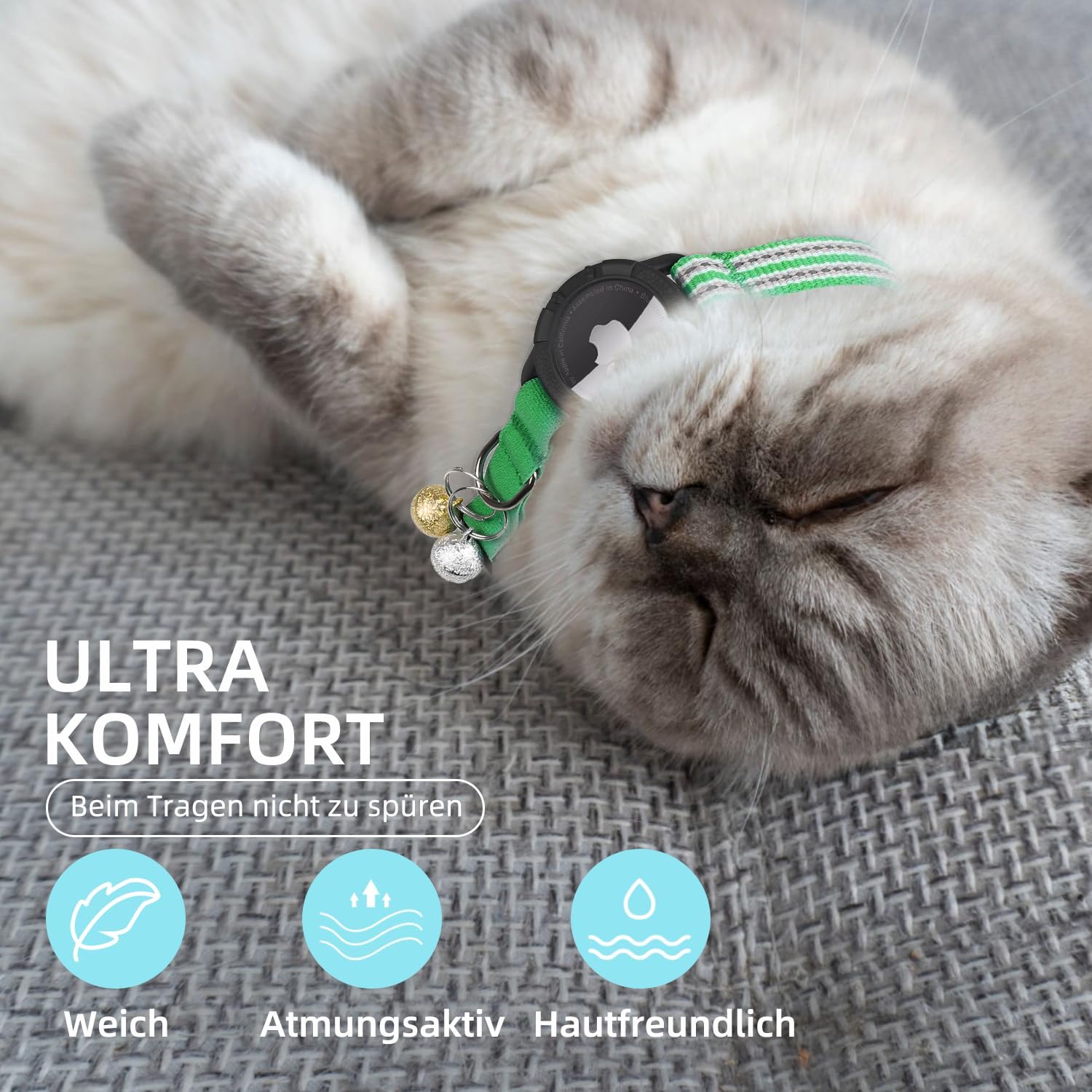 • ПЕРФЕКТНИЯТ ПОДАРЪК ЗА ВАШАТА КОТКА: Нашийникът за проследяване на котки се предлага с 30-дневна гаранция и първокласно обслужване на клиентите. Ако имате въпроси, не се колебайте да се свържете с нас. Съдържание на подаръка: 1 x нашляк AirTag, 1 x подвижен звънец.