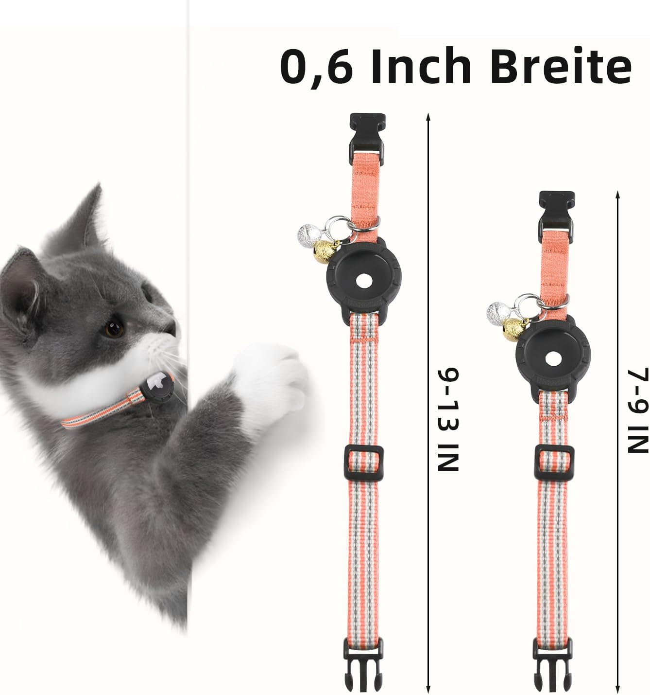 • ДВА РАЗМЕРА И ЛАСТИК Нашийникът за котки AirTag се предлага в два размера (XS: 7-9 инча | S: 9-13 инча), за да се адаптира към котки с различна форма на тялото. Еластичната лента гарантира, че вашият домашен любимец може лесно да се измъкне, ако нашийникът се закачи, предотвратявайки задавяне или дискомфорт.