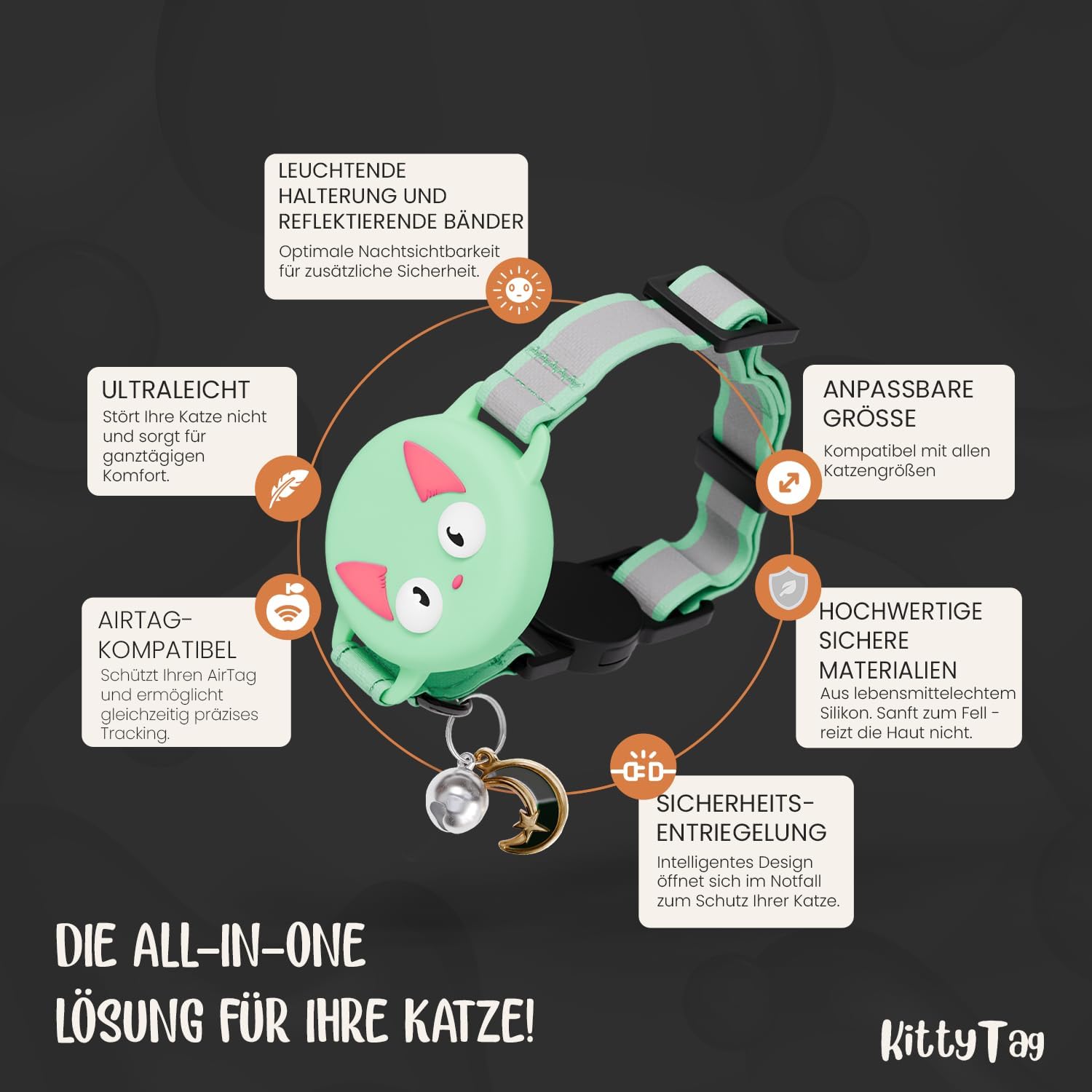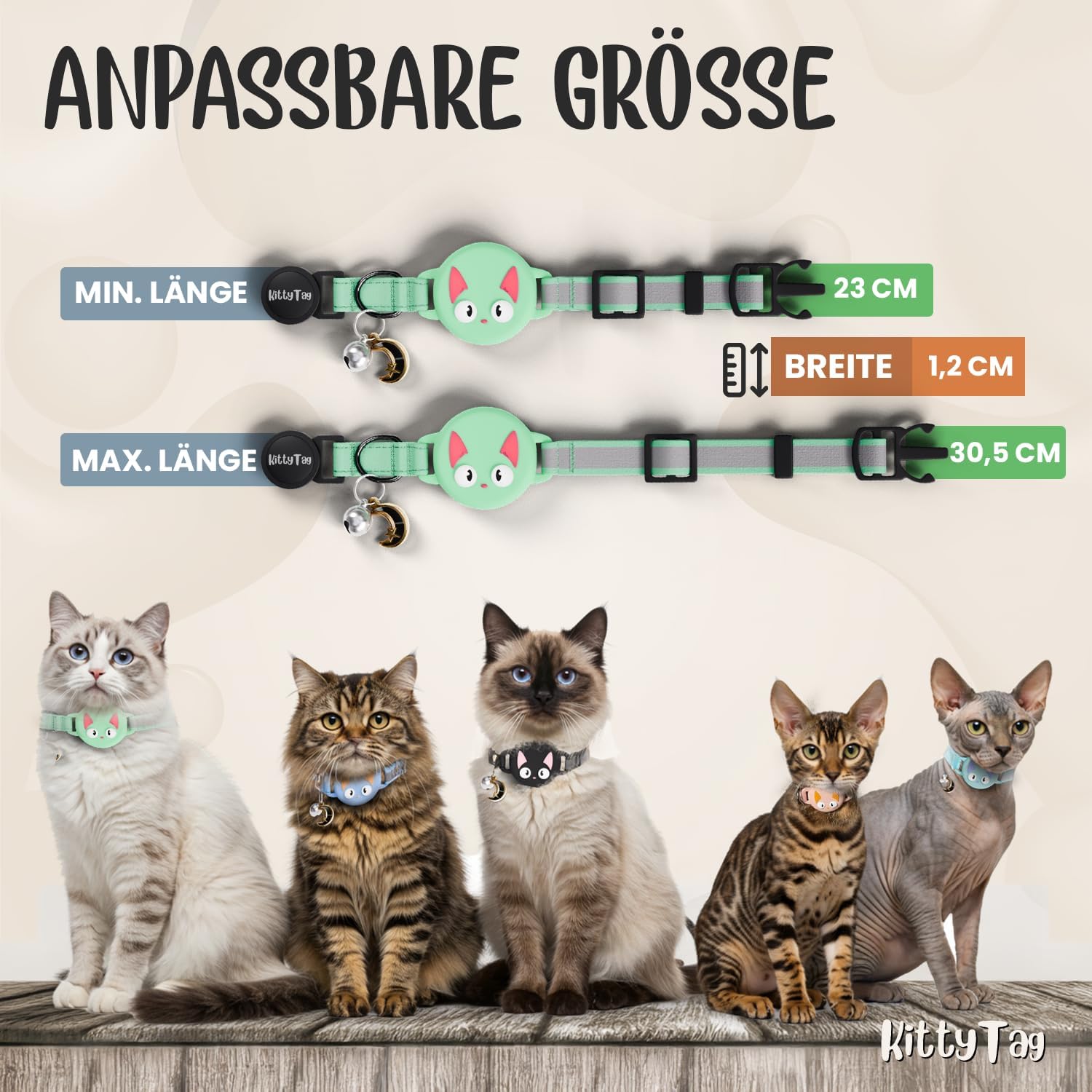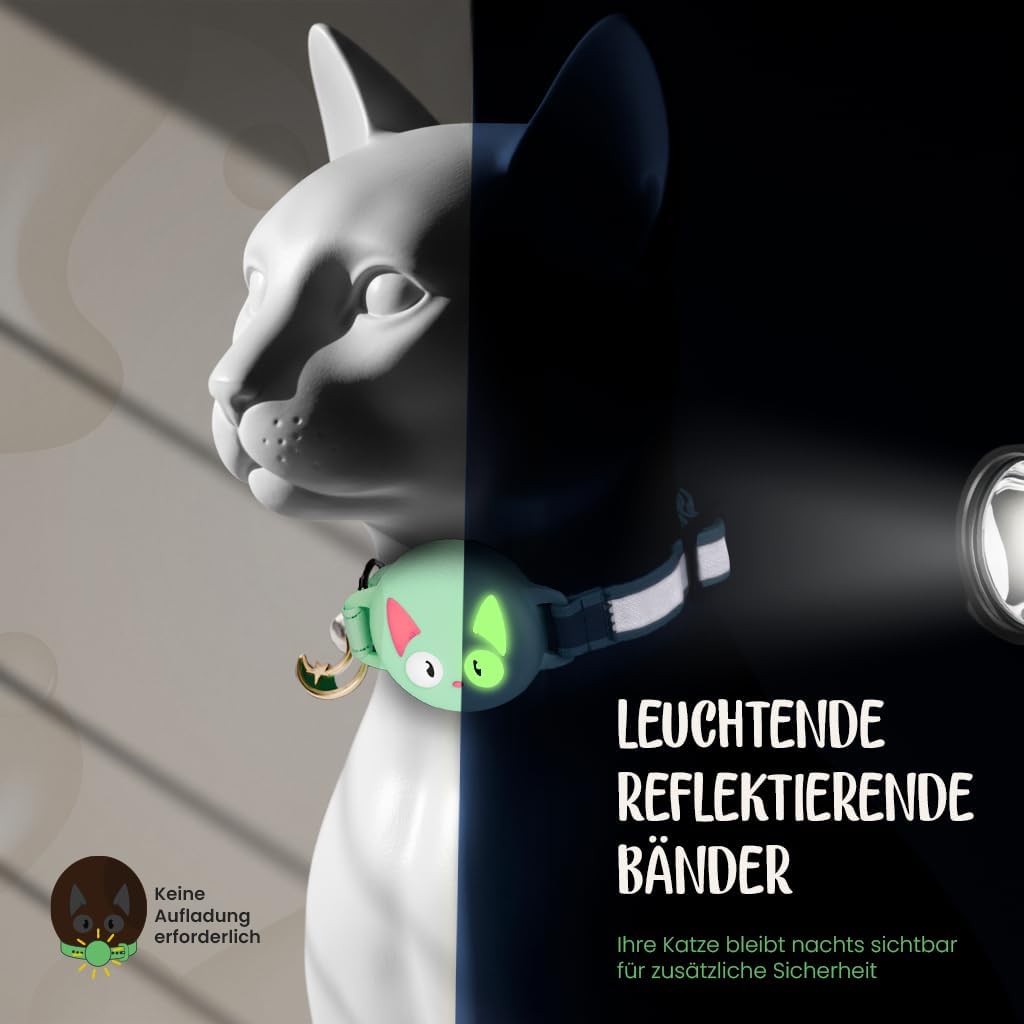 Нашийник за котки с аксесоари, съвместим с Apple AirTag, отразяващ и светещ, GPS, за котки с функция против дроселиране, регулируем, GPS AirTag не е включен