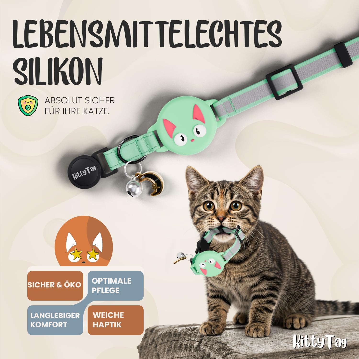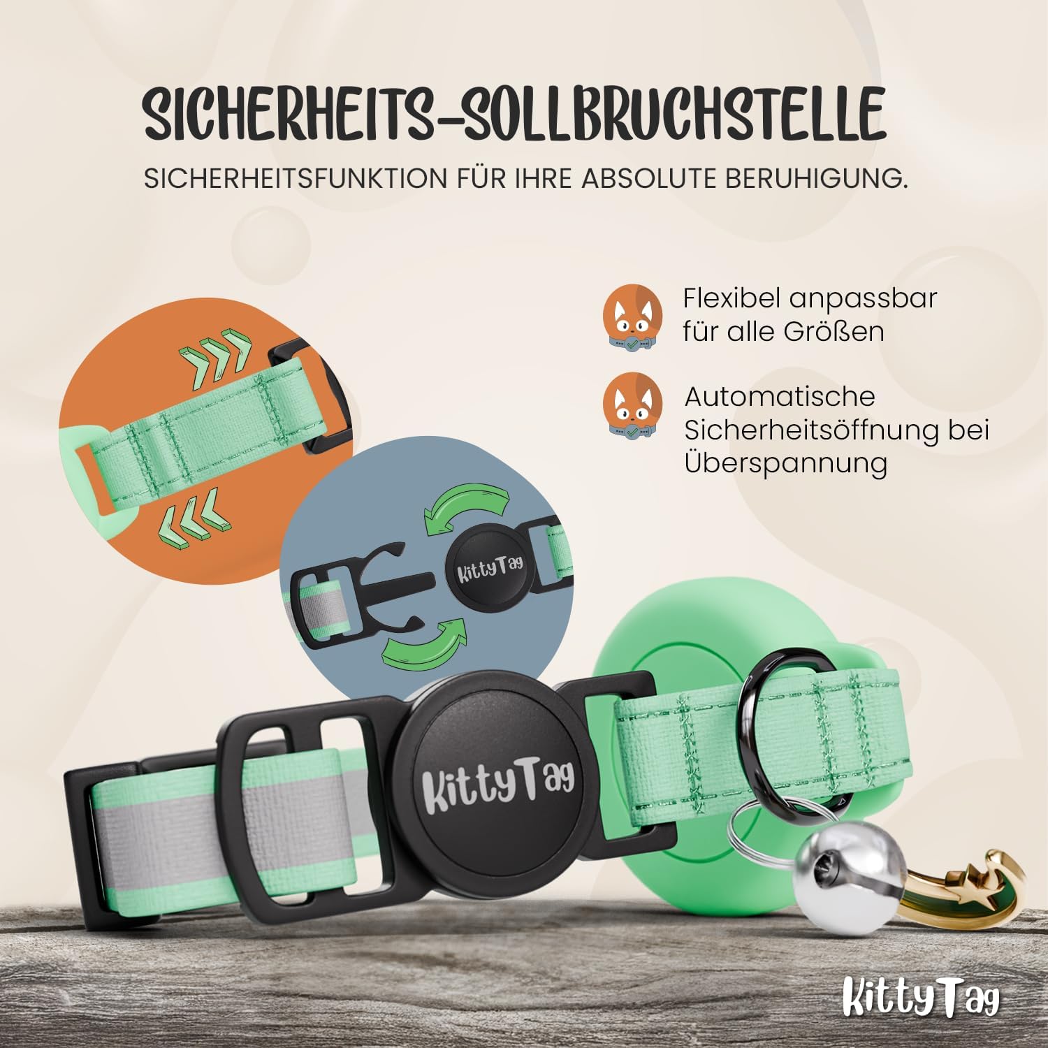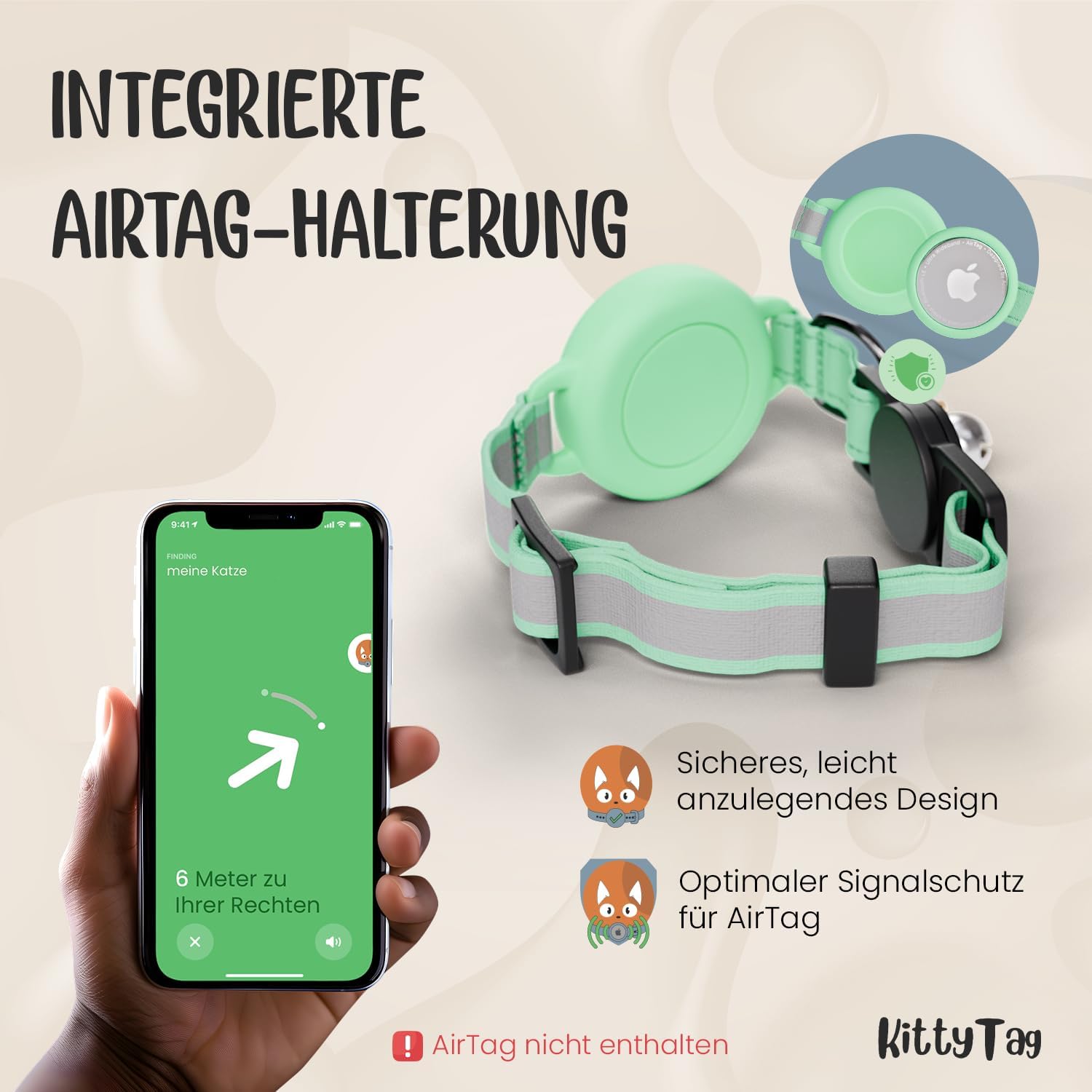 Нашийник за котки с аксесоари, съвместим с Apple AirTag, отразяващ и светещ, GPS, за котки с функция против дроселиране, регулируем, GPS AirTag не е включен