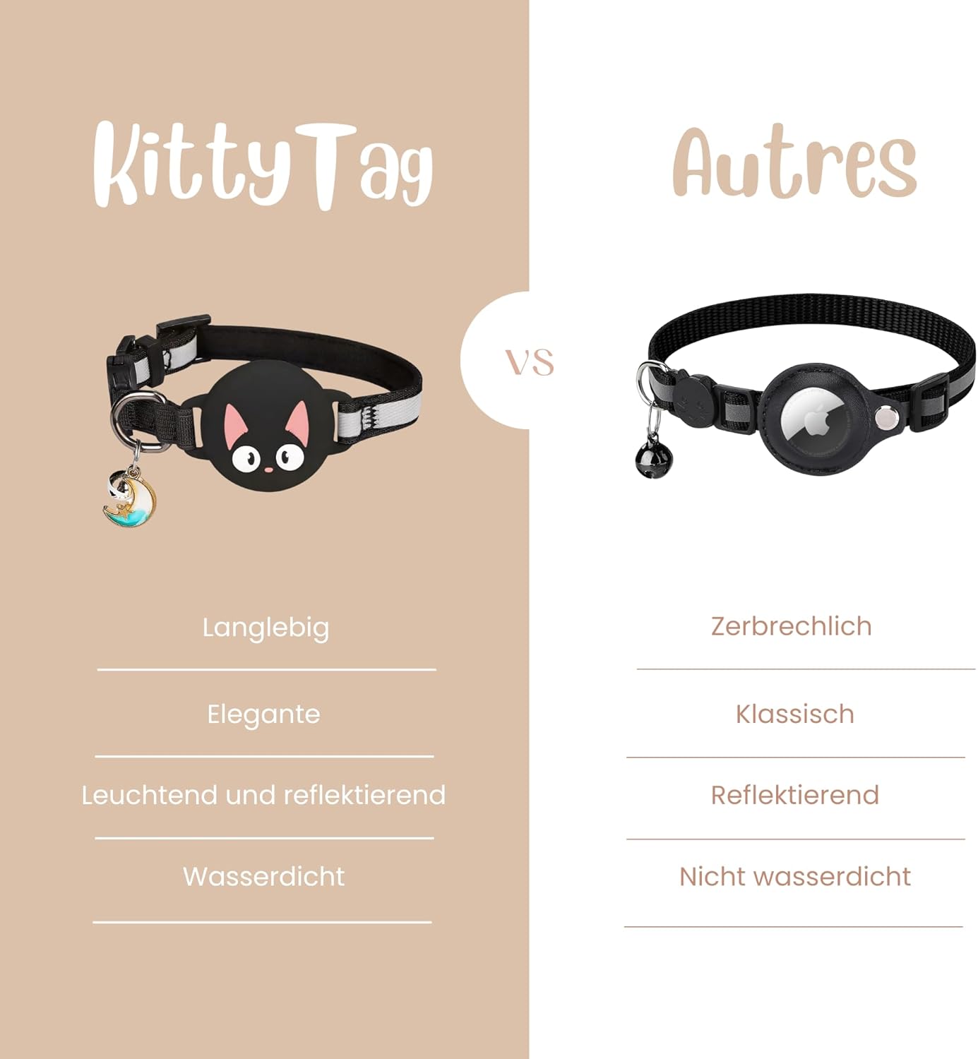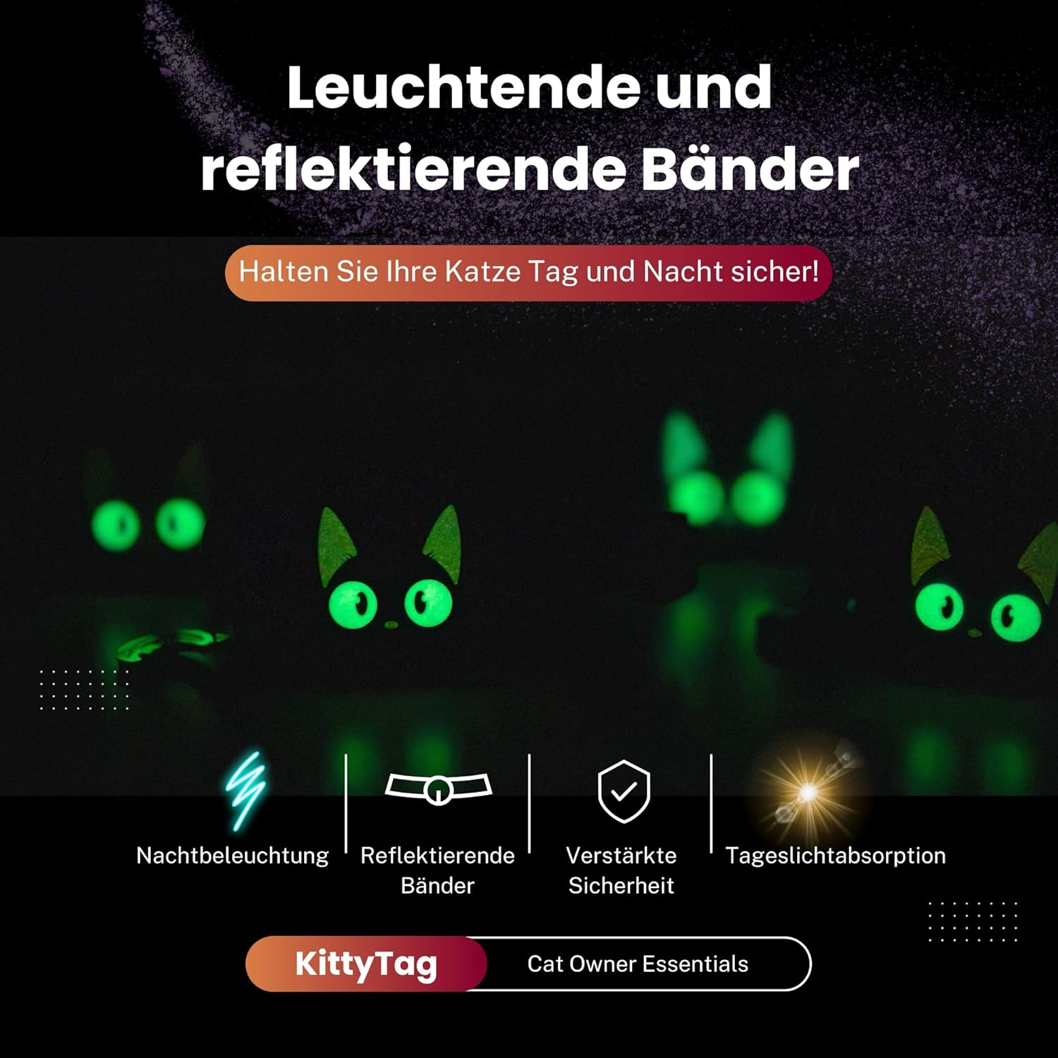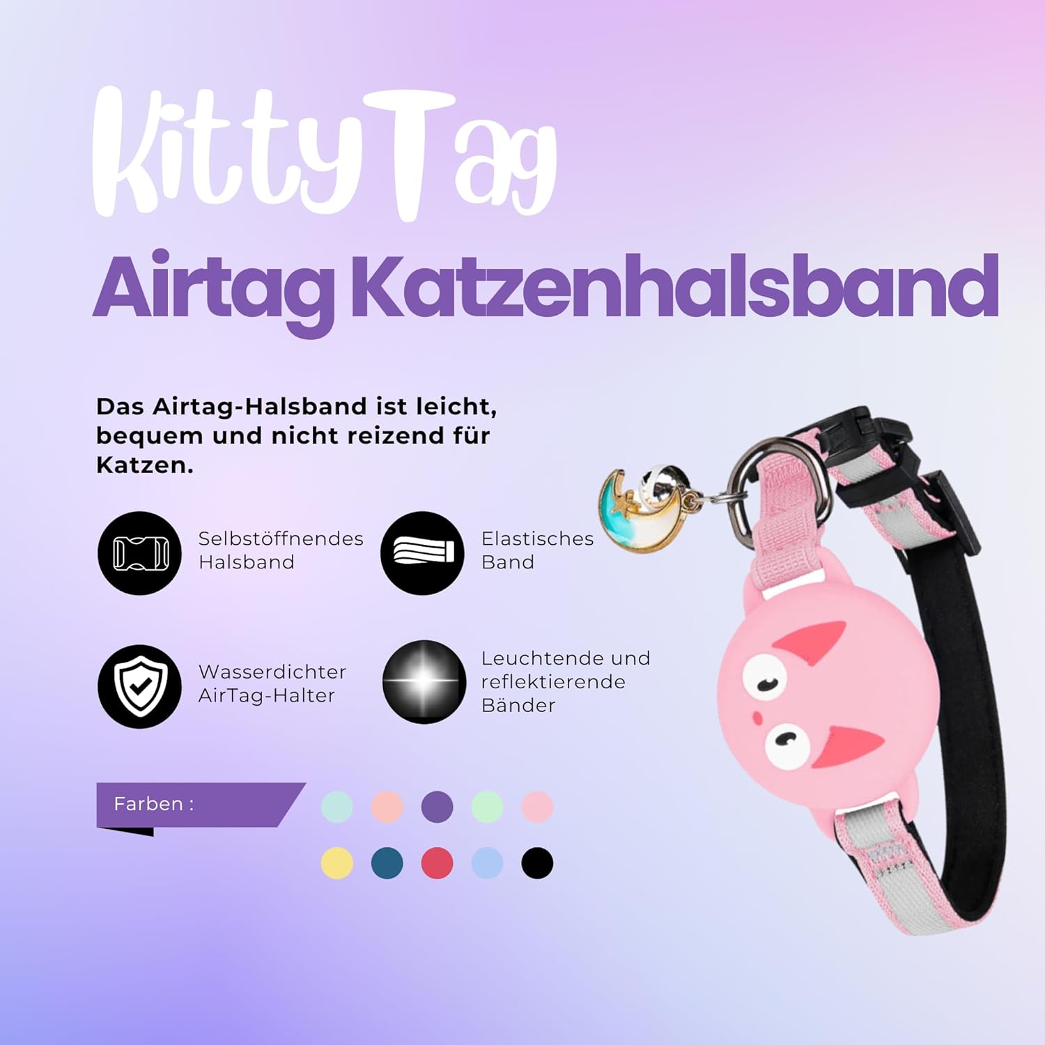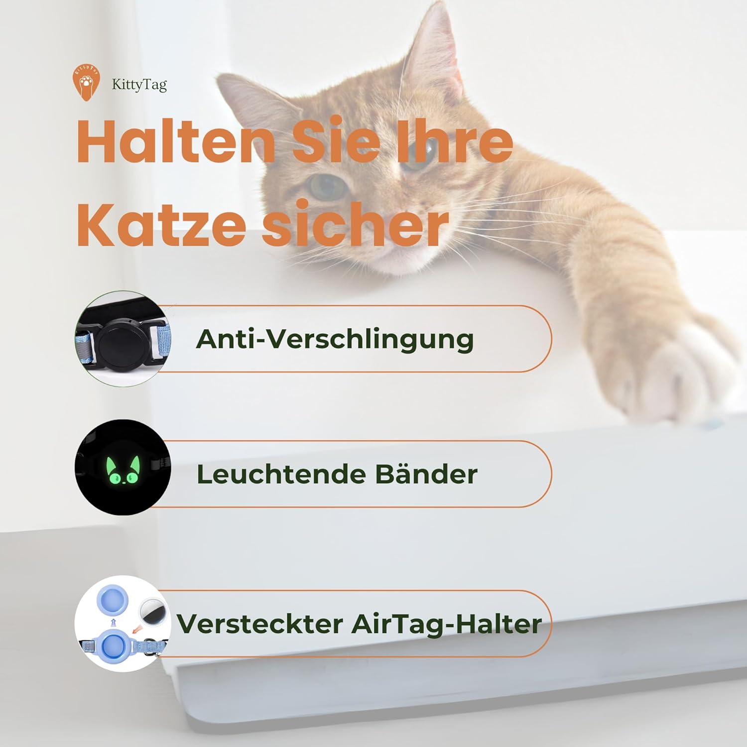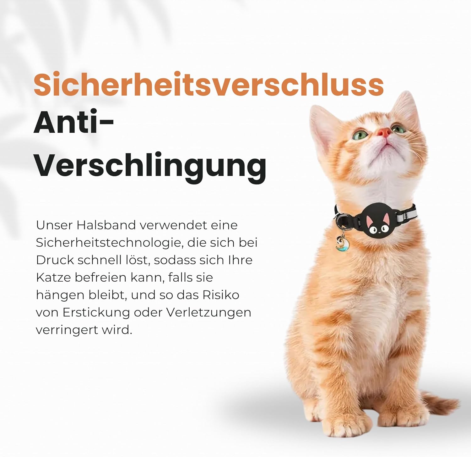 Нашийник за котки с аксесоари, съвместим с Apple AirTag, отразяващ и светещ, GPS, за котки с функция против дроселиране, регулируем, GPS AirTag не е включен