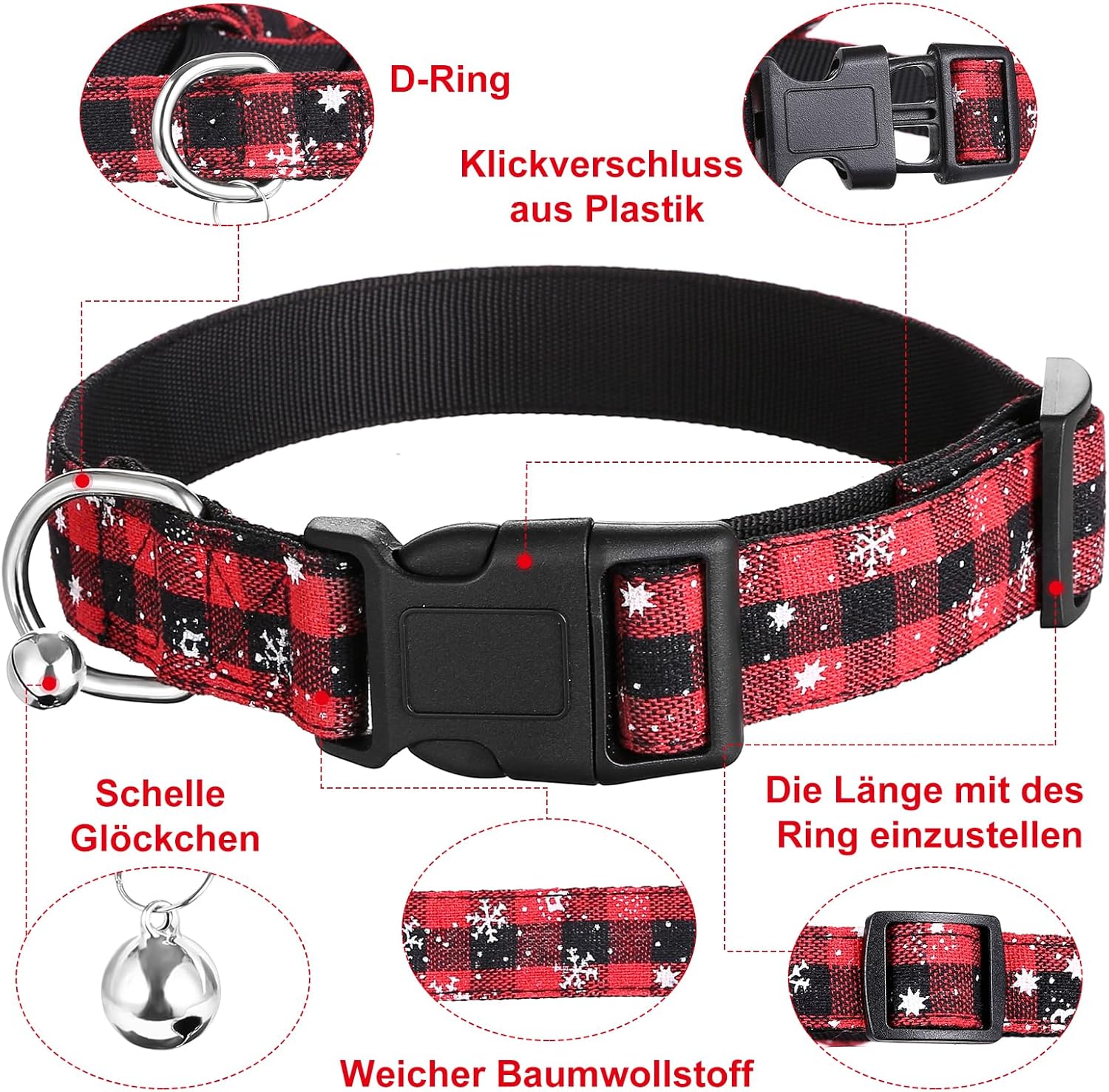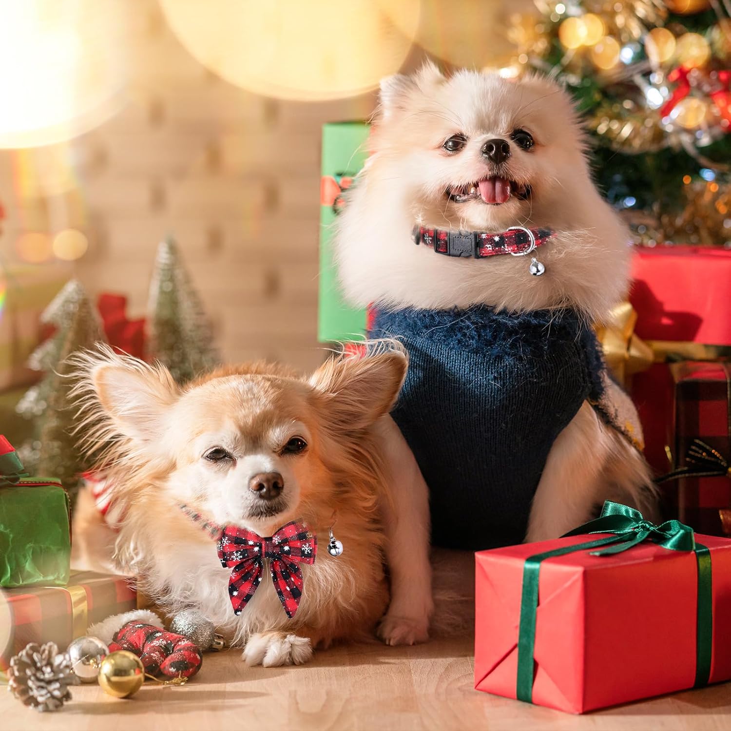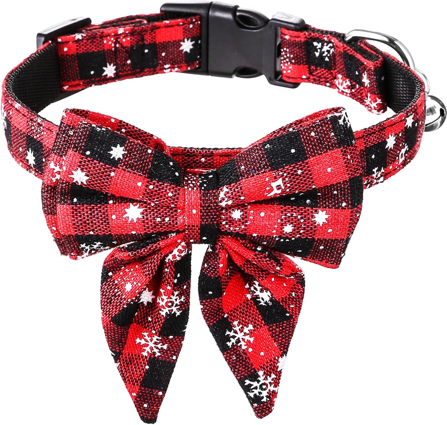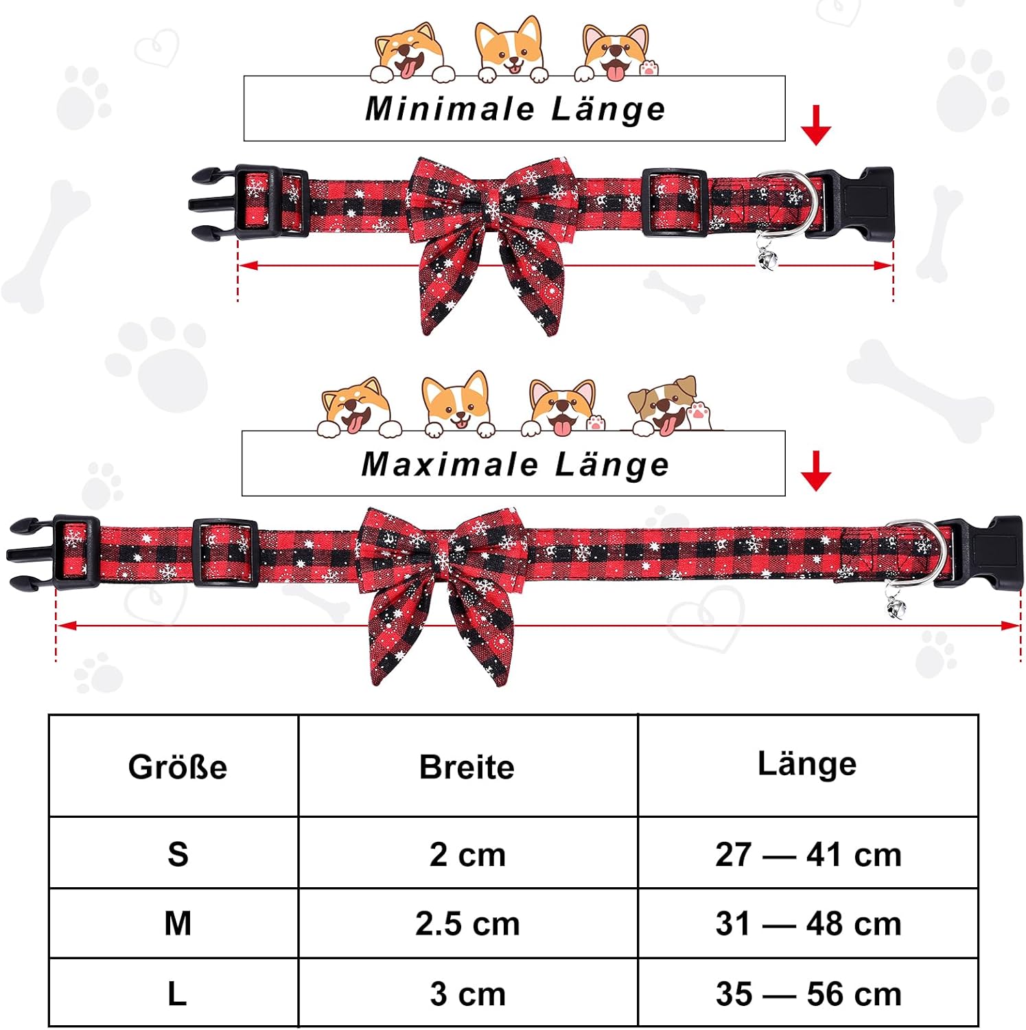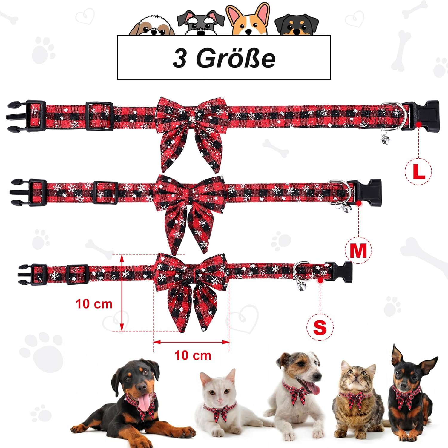 Нашийник за кучета Kesote, Нашийник за котки, Коледен нашийник за кучета, Малка панделка за кучета, Регулируема панделка, Червен, Коледен подарък за кученце (S)