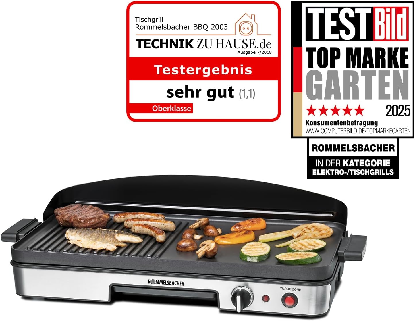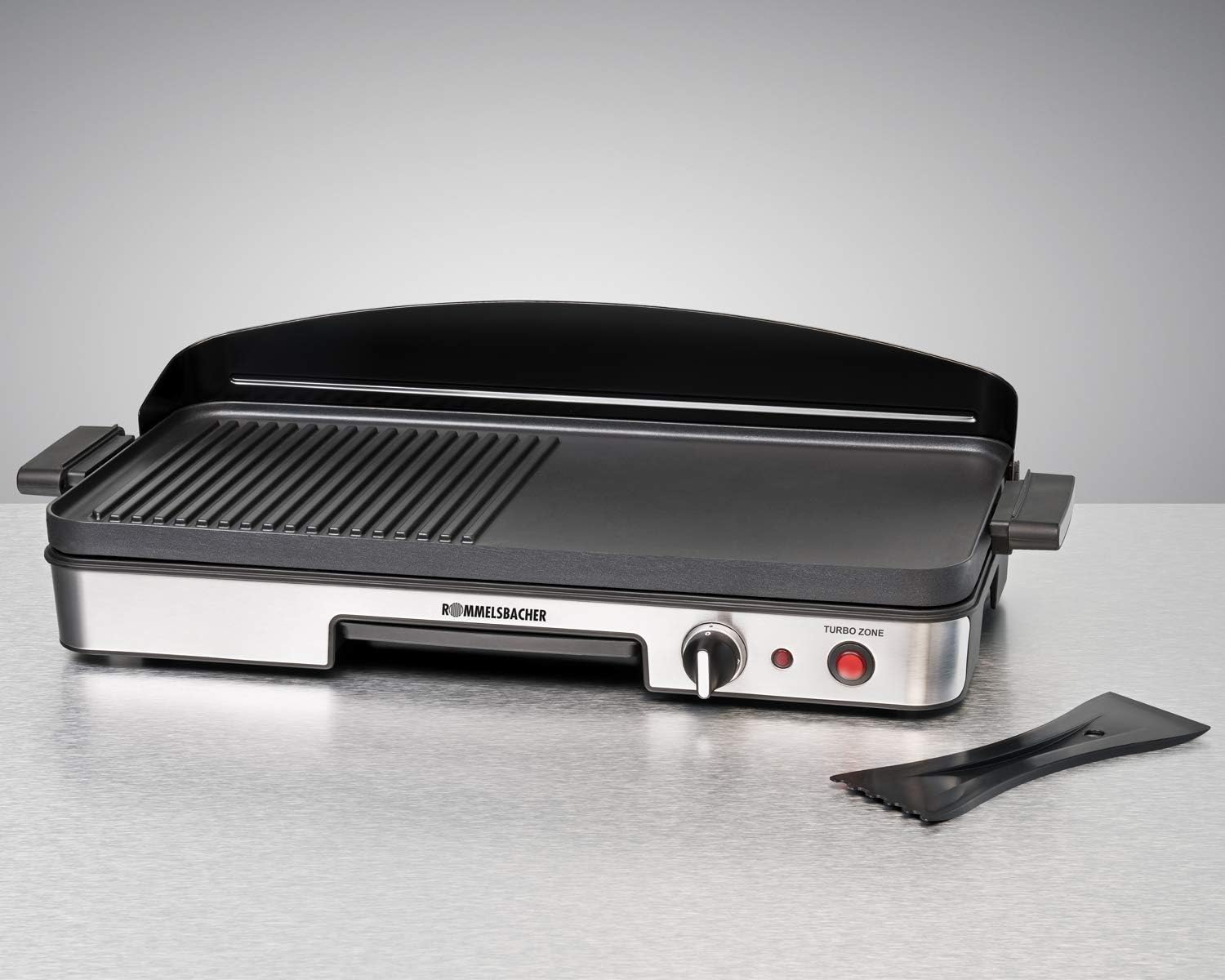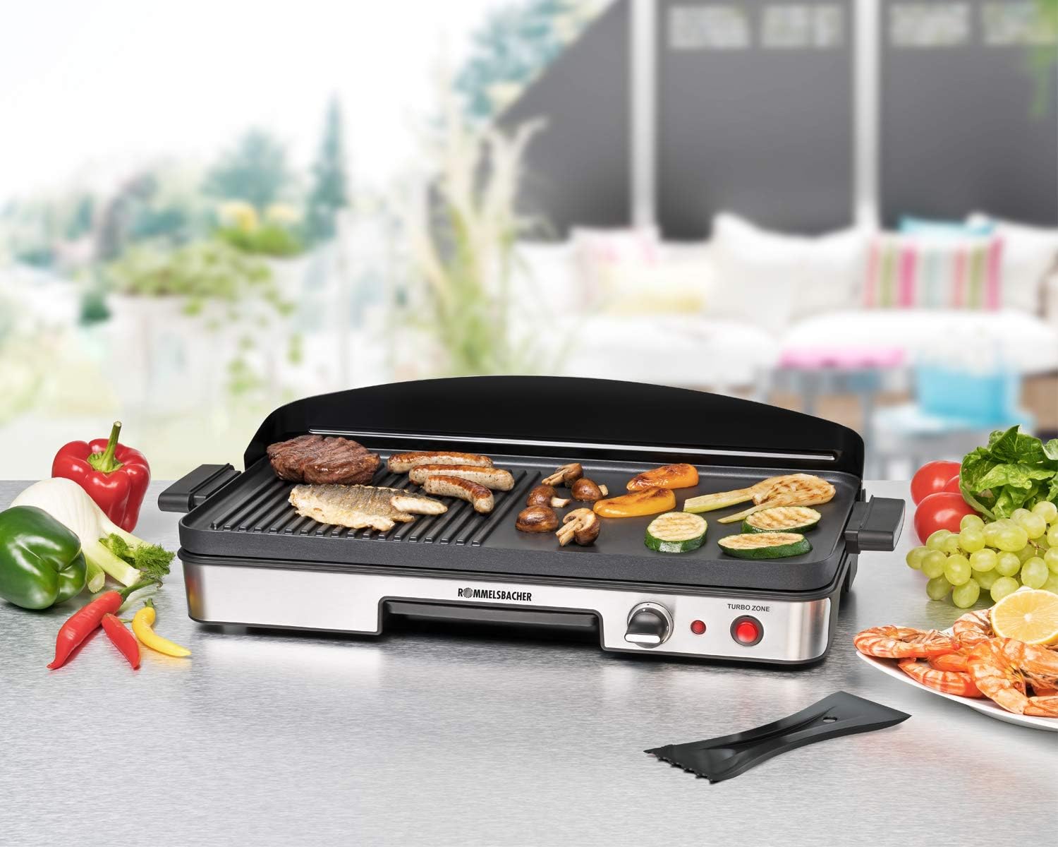 Настолен грил Rommelsbacher BBQ 2003 с турбо зона, 3-слойно незалепващо покритие, повърхност за готвене 50 x 25 см, 1900 вата