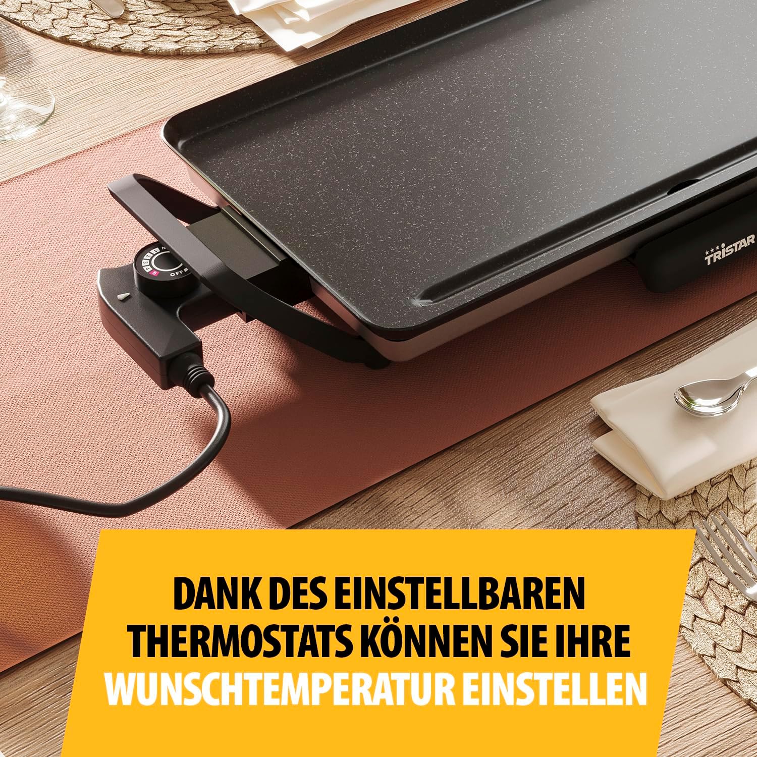 С грила Tristar можете лесно да регулирате температурата благодарение на регулируемия му термостат. Това означава, че можете да изберете перфектната температура за всяко ястие, което искате да приготвите. Независимо дали искате да направите палачинки, зеленчуци на скара или пържени яйца, регулируемият термостат ви дава пълен контрол.