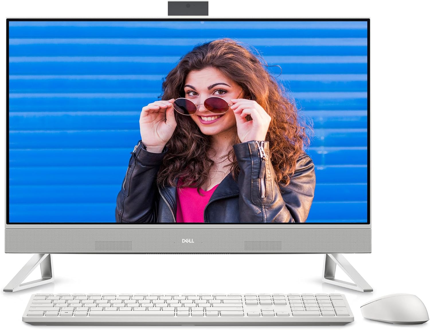 Настолен компютър Dell Inspiron 27-инчов 7730 All-in-One, 27-инчов FHD, Intel Core i5-1334U, 16 GB RAM, 512 GB SSD, Intel Iris XE Graphics, Windows 11 Home - френска клавиатура AZERTY, бял
