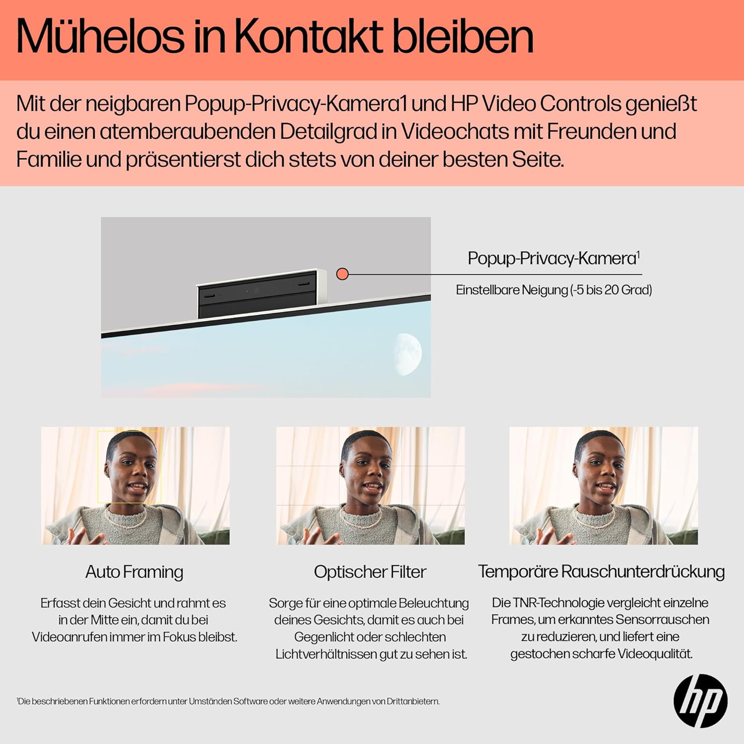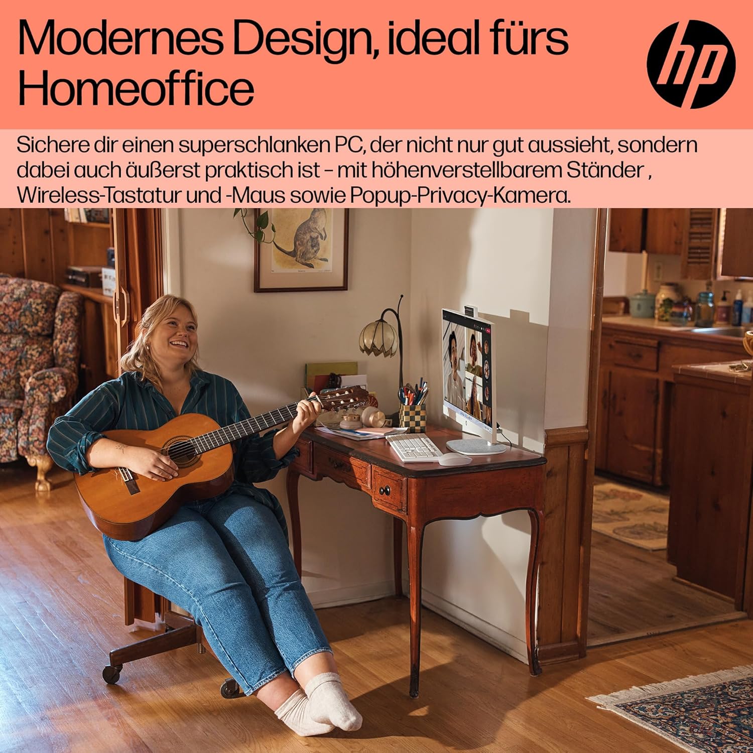 Настолен компютър HP All-in-One, 23,8" FHD дисплей, AMD Ryzen 5 7520U, 8 GB DDR5 RAM, 512 GB SSD, AMD Radeon Graphics, Windows 11 Home, QWERTZ, бял, [Ексклузивно в Amazon]