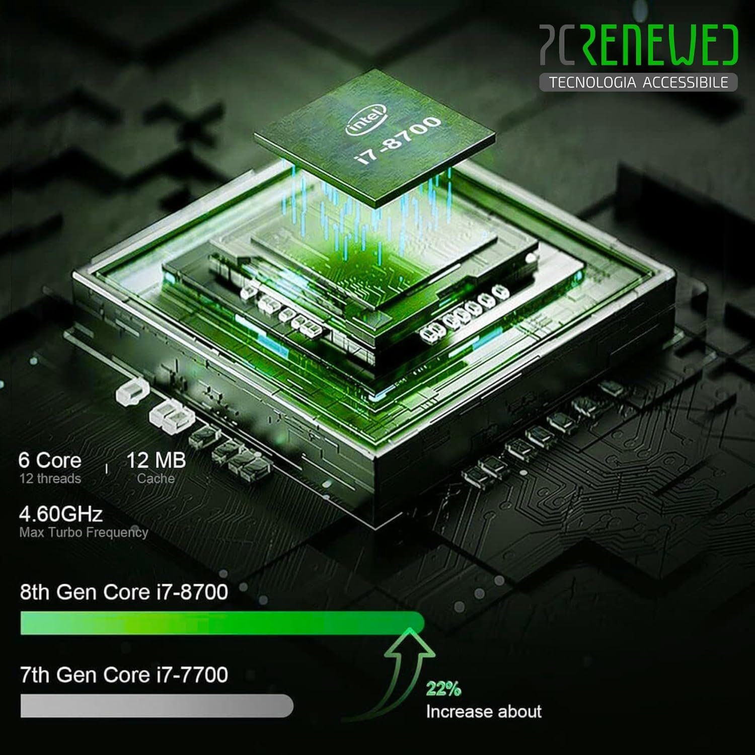 Открийте перфектното решение за вашия офис или домашен офис – цялостна, мощна и готова за употреба професионална работна станция. Този обновен настолен компютър с процесор i7 е идеален за тези, които търсят надеждност, скорост и превъзходно качество на картината, всичко в един пакет. Подписано от PCRENEWED, италианска компания, специализирана от години в обновяването на професионални настолни компютри и обслужване на клиенти, включително следпродажбено обслужване.