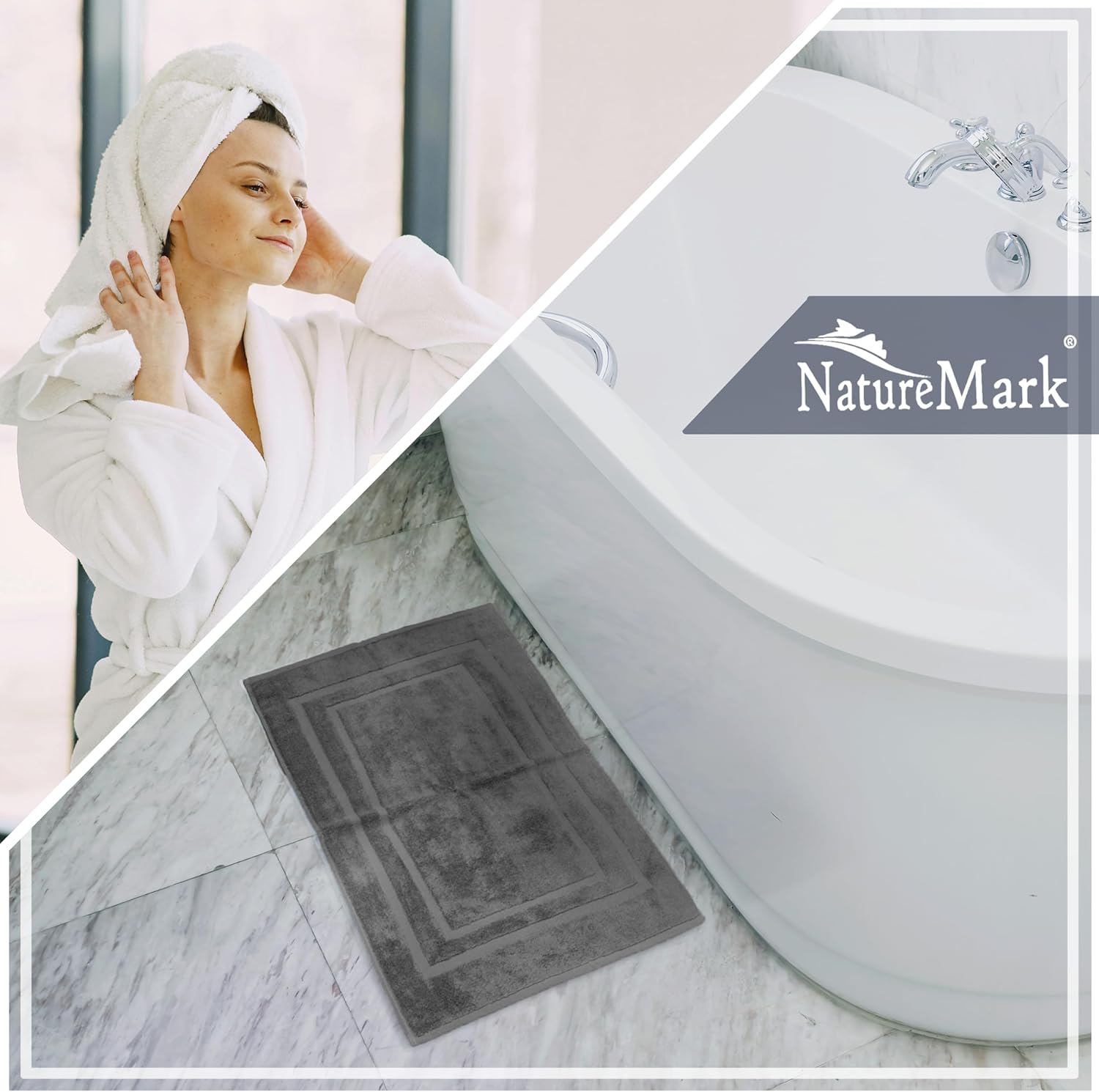 NatureMark 2 бр. постелки за баня, 100% памук, 50 x 80 см, постелка за душ, двоен комплект постелки за душ