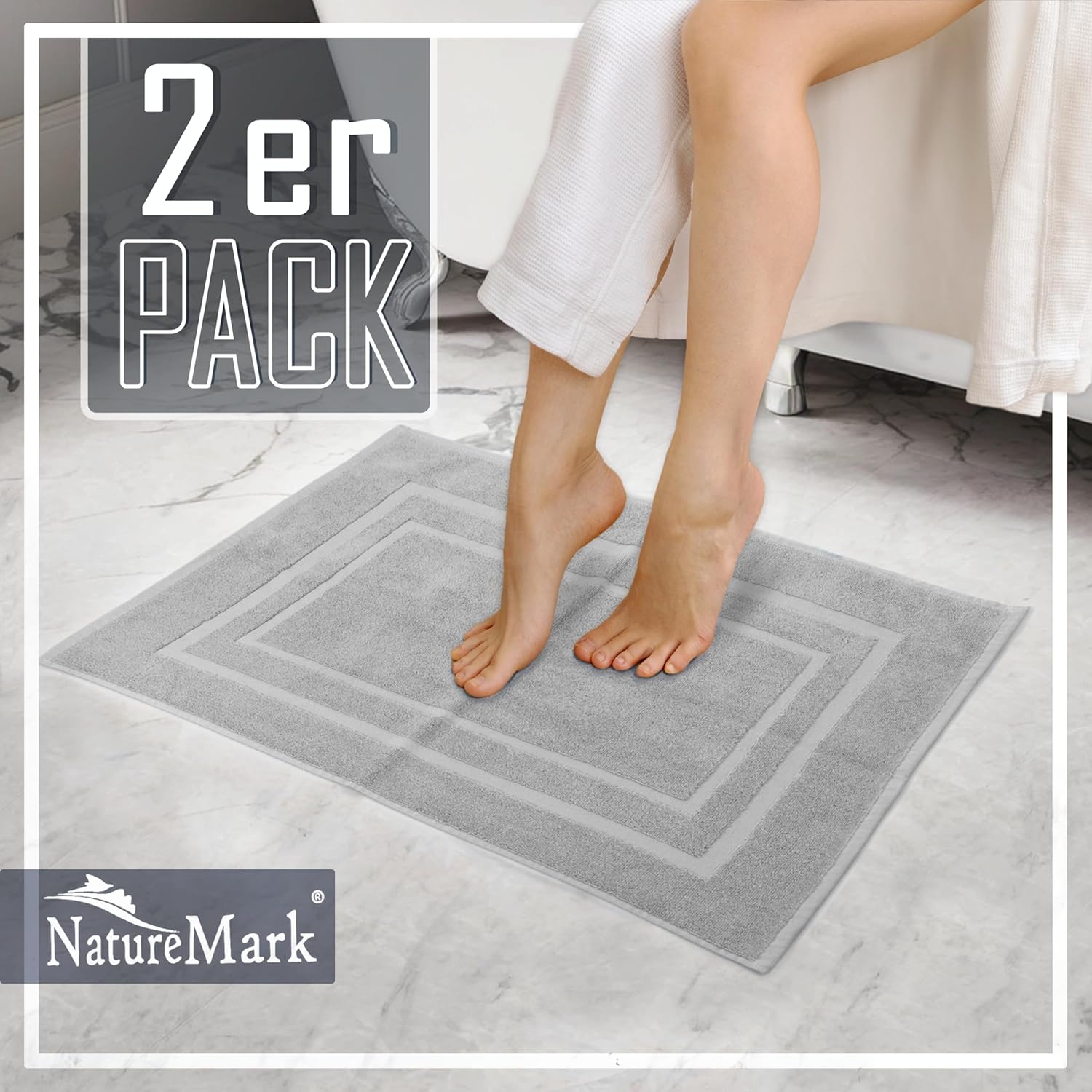 NatureMark 2 бр. постелки за баня, 100% памук, 50 x 80 см, постелка за душ, двоен комплект постелки за душ
