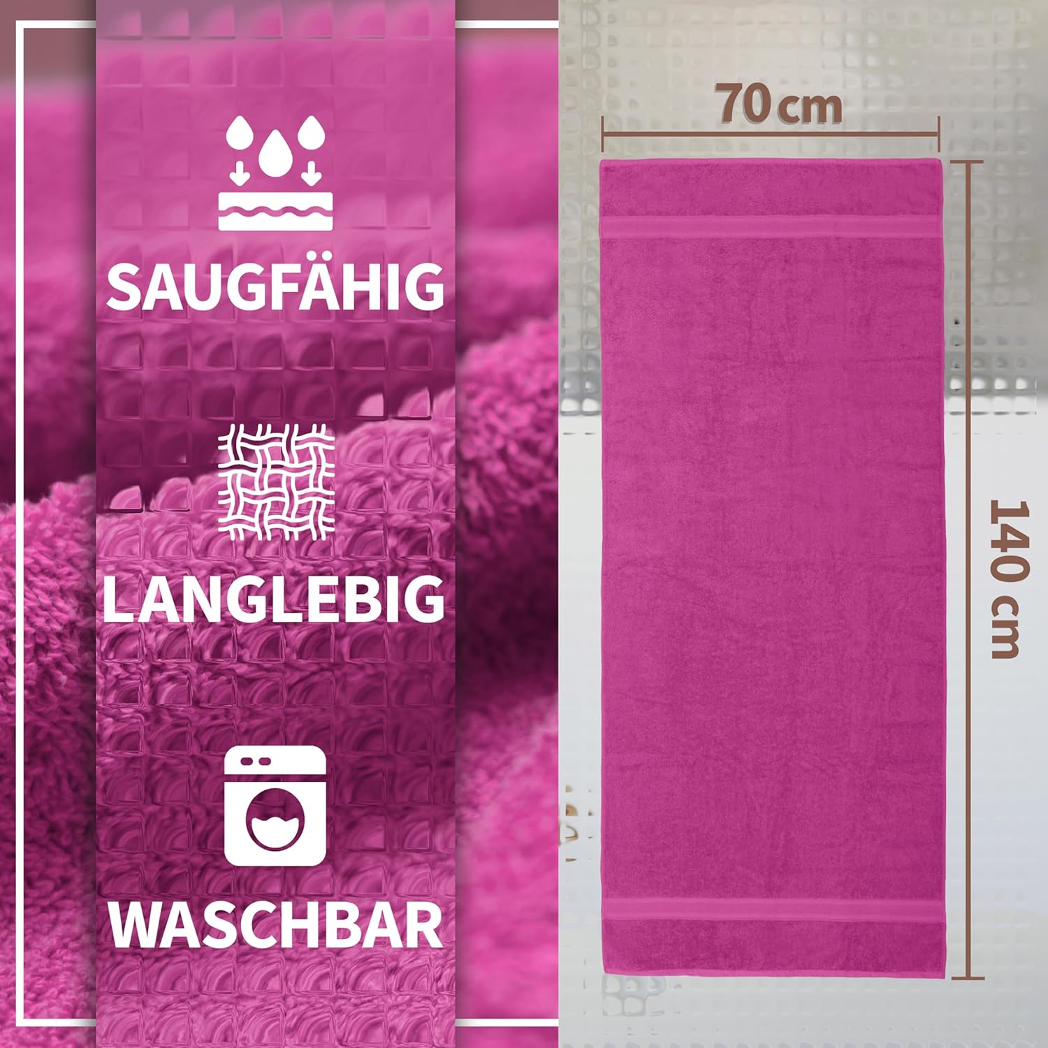 • Особено меки и приятни на допир хавлиени кърпи: качество 500 г/м², с практична примка за окачване.
