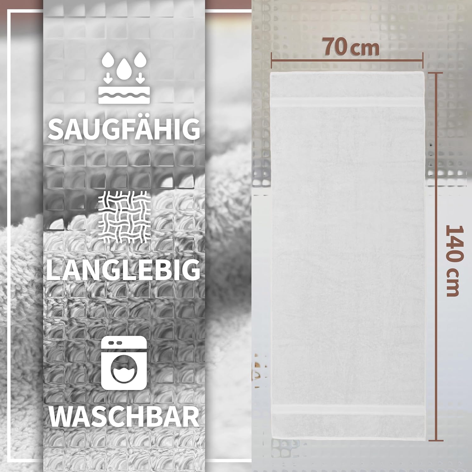 • Особено меки и приятни на допир хавлиени кърпи: качество 500 г/м², с практична примка за окачване.