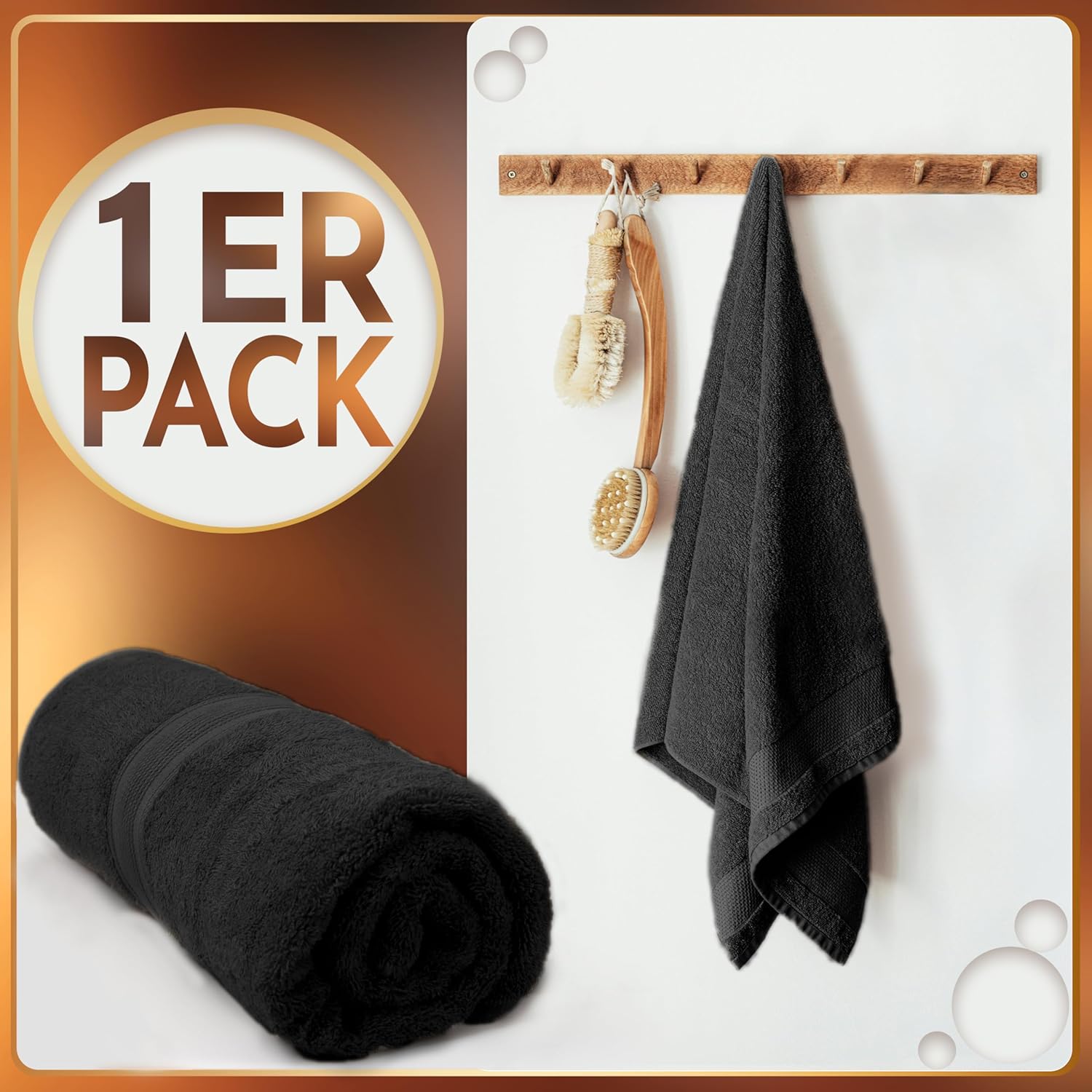 NatureMark Комплект от 1 кърпа за сауна, 80 x 200 см Луксозни кърпи от чист памук за мъже и жени, изключително мека и издръжлива кърпа за уелнес, цвят: черен