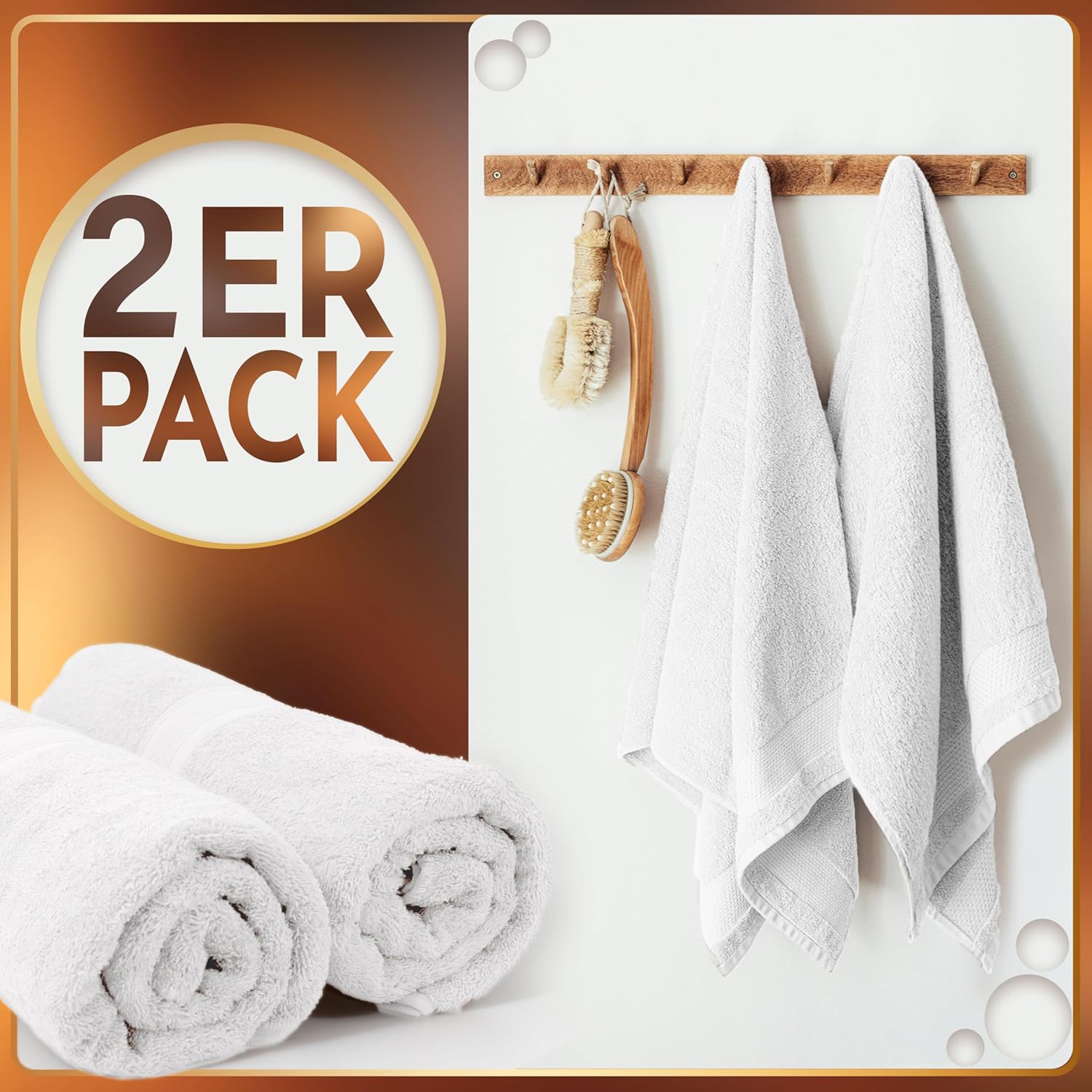 NatureMark Комплект от 2 кърпи за сауна 80 x 200 см | Луксозни памучни кърпи | Уелнес кърпа с изключителна мекота Цвят: Бял