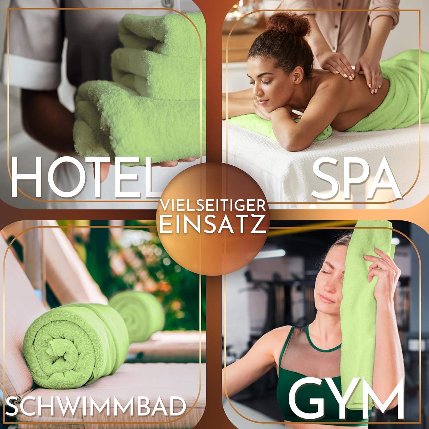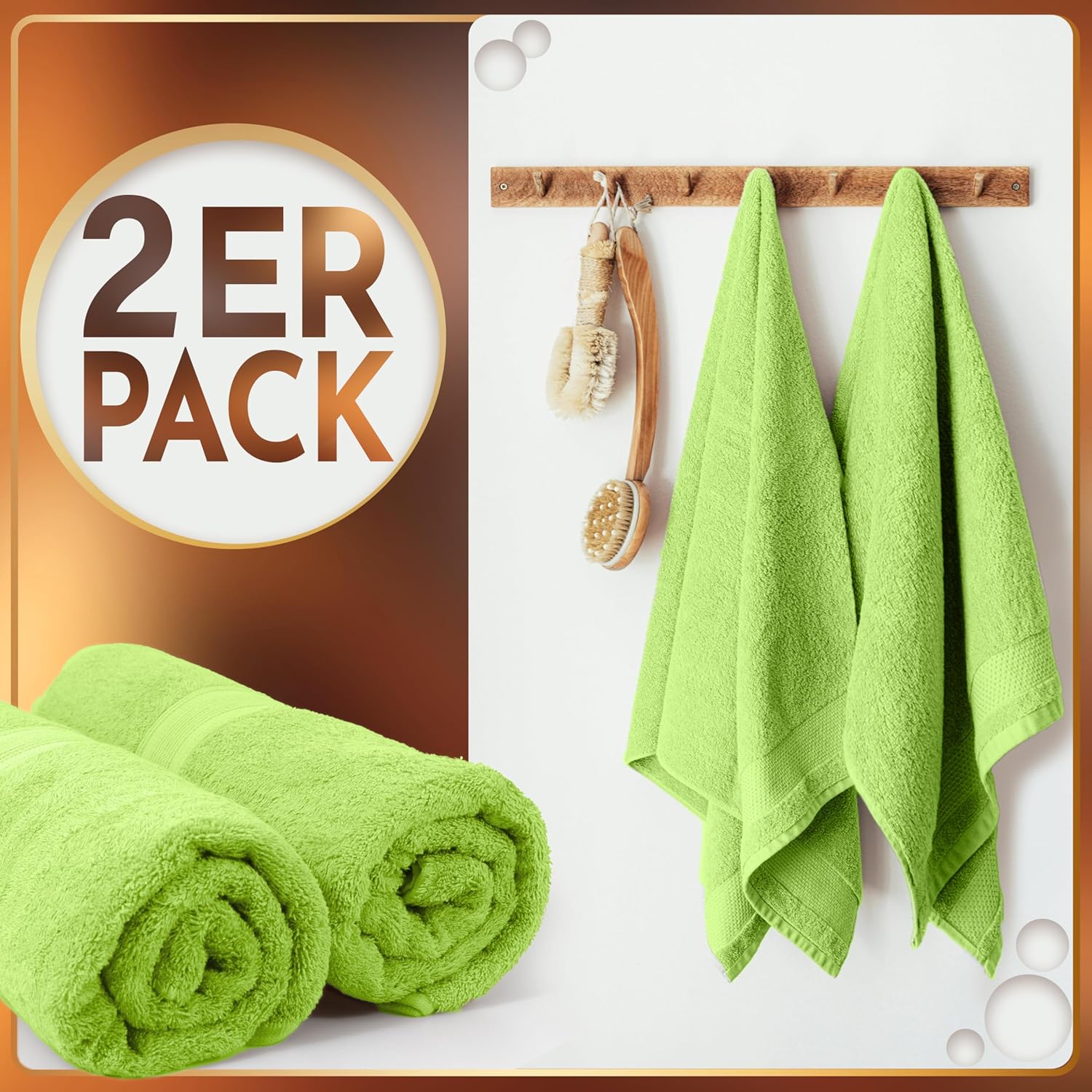 NatureMark Комплект от 2 кърпи за сауна, първокласно качество 80 x 200 см, двоен комплект кърпи за сауна, цвят: ябълково зелено