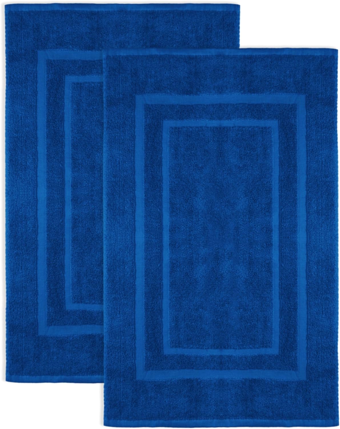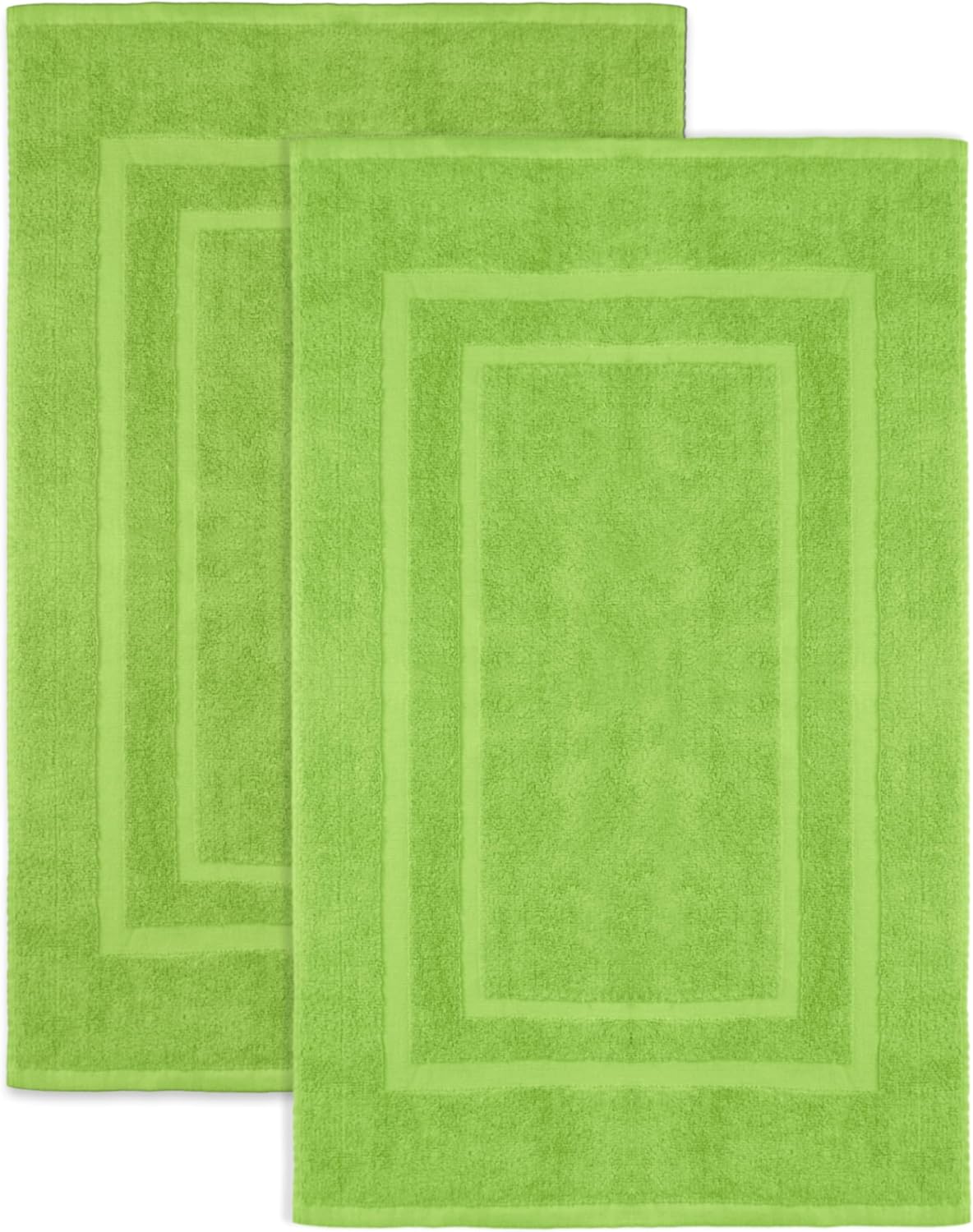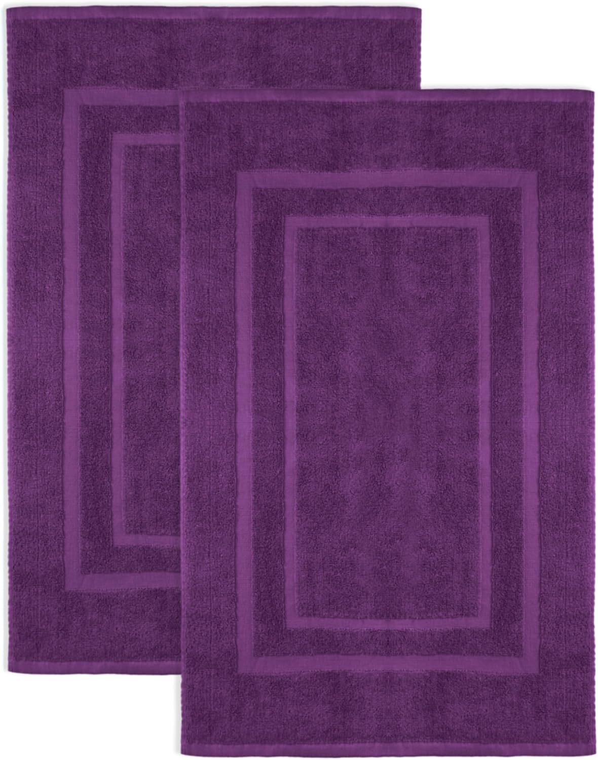 • Комплект от 2 първокласни хавлиени памучни постелки за баня без гумена подложка. Размер: 50x80 см. 100% памук
