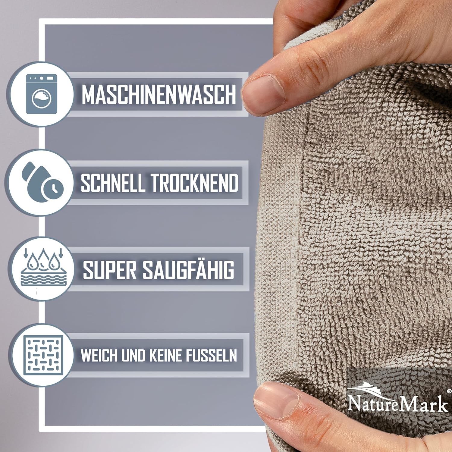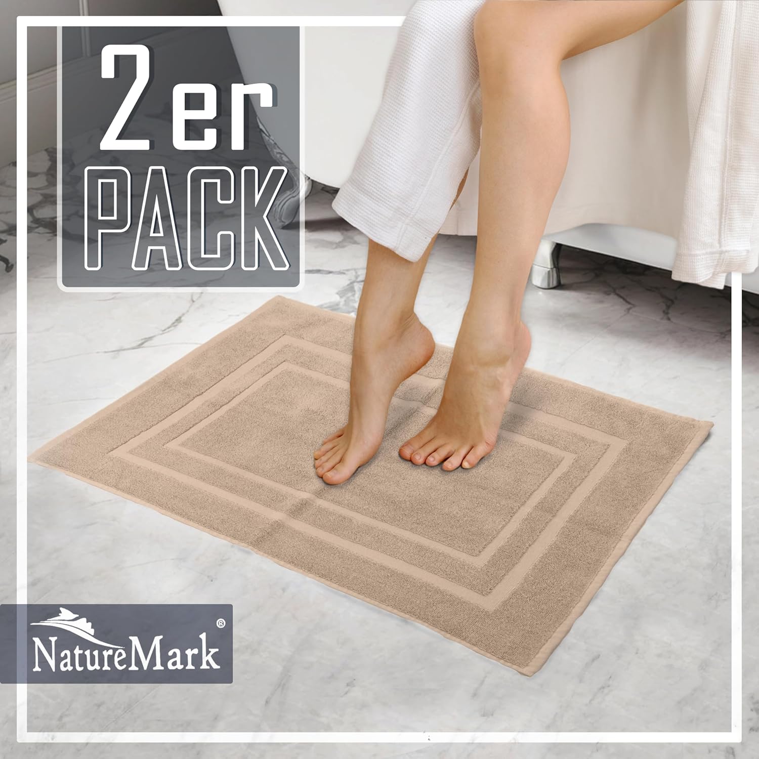 NatureMark Комплект от 2 постелки за баня, първокласно качество, 100% памук, 50 x 80 см, двоен комплект постелки за душ, цвят: пясък / бежов