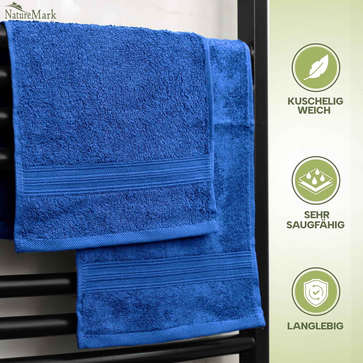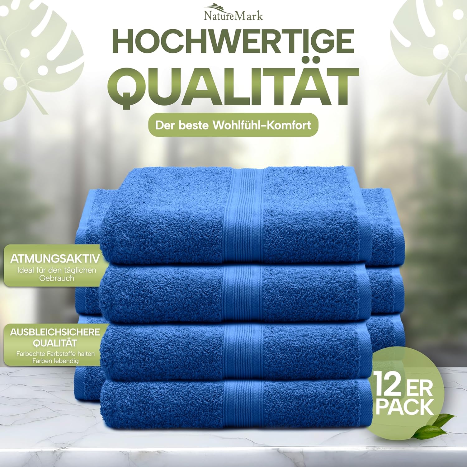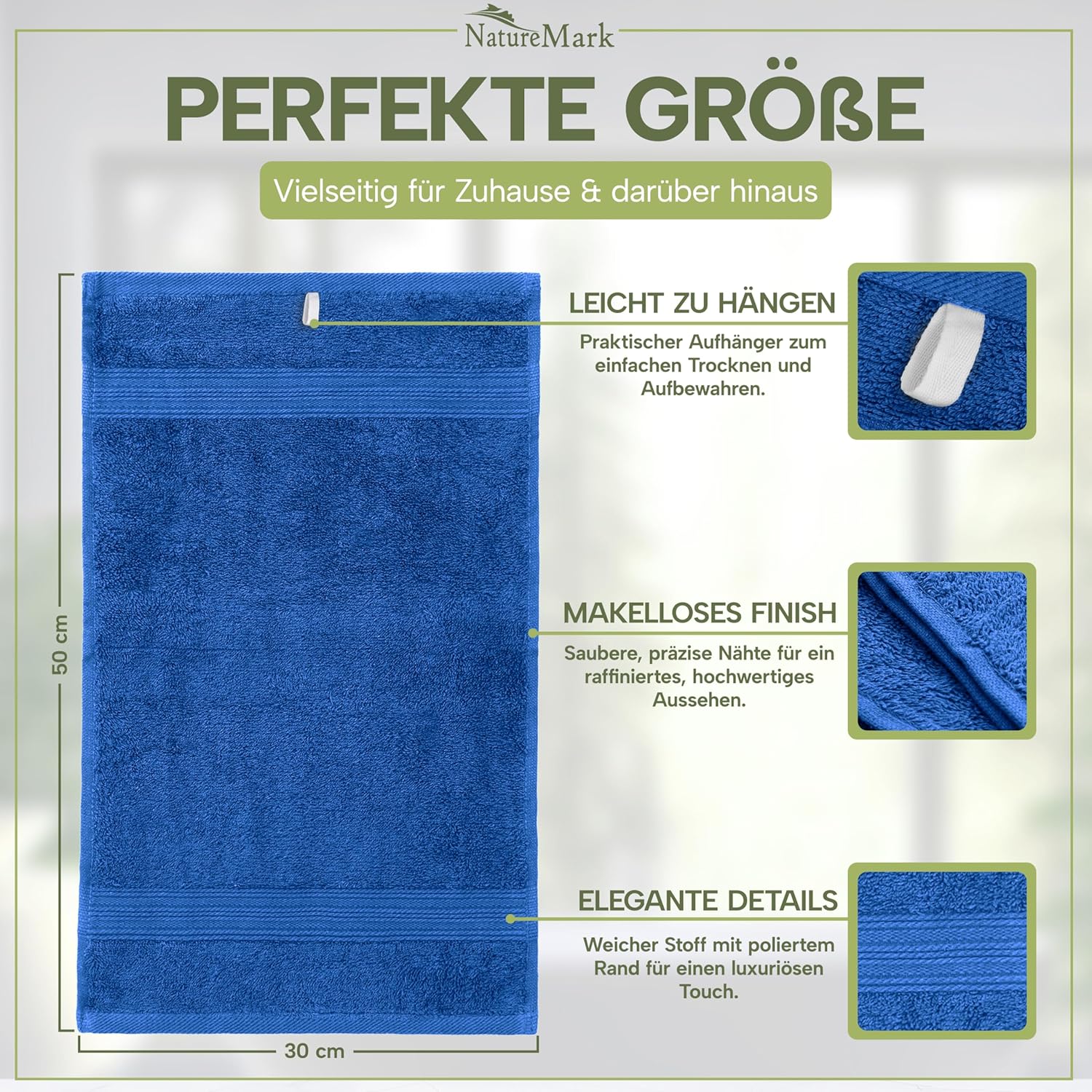 NatureMark NM-HT0816 Хавлиени кърпи за гости, пакет от 12, 30 x 50 см, 100% памук