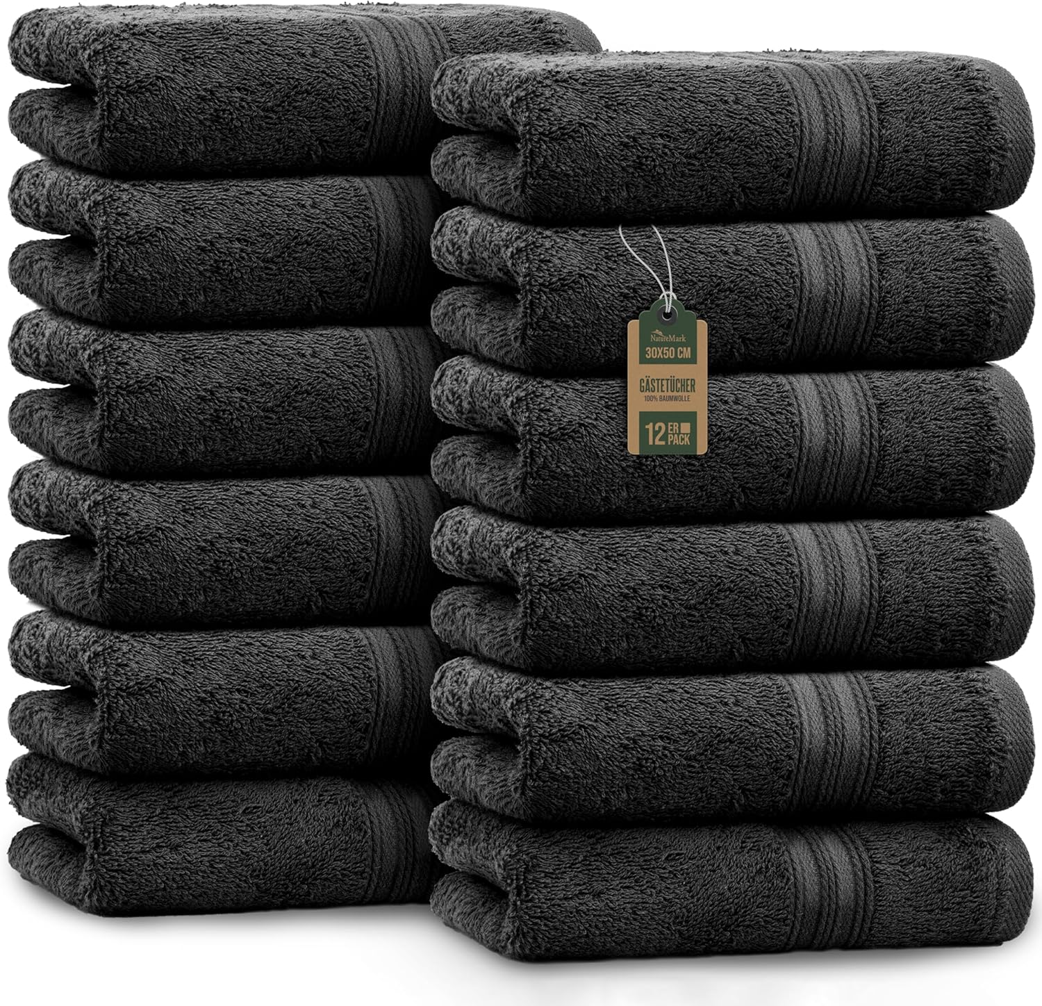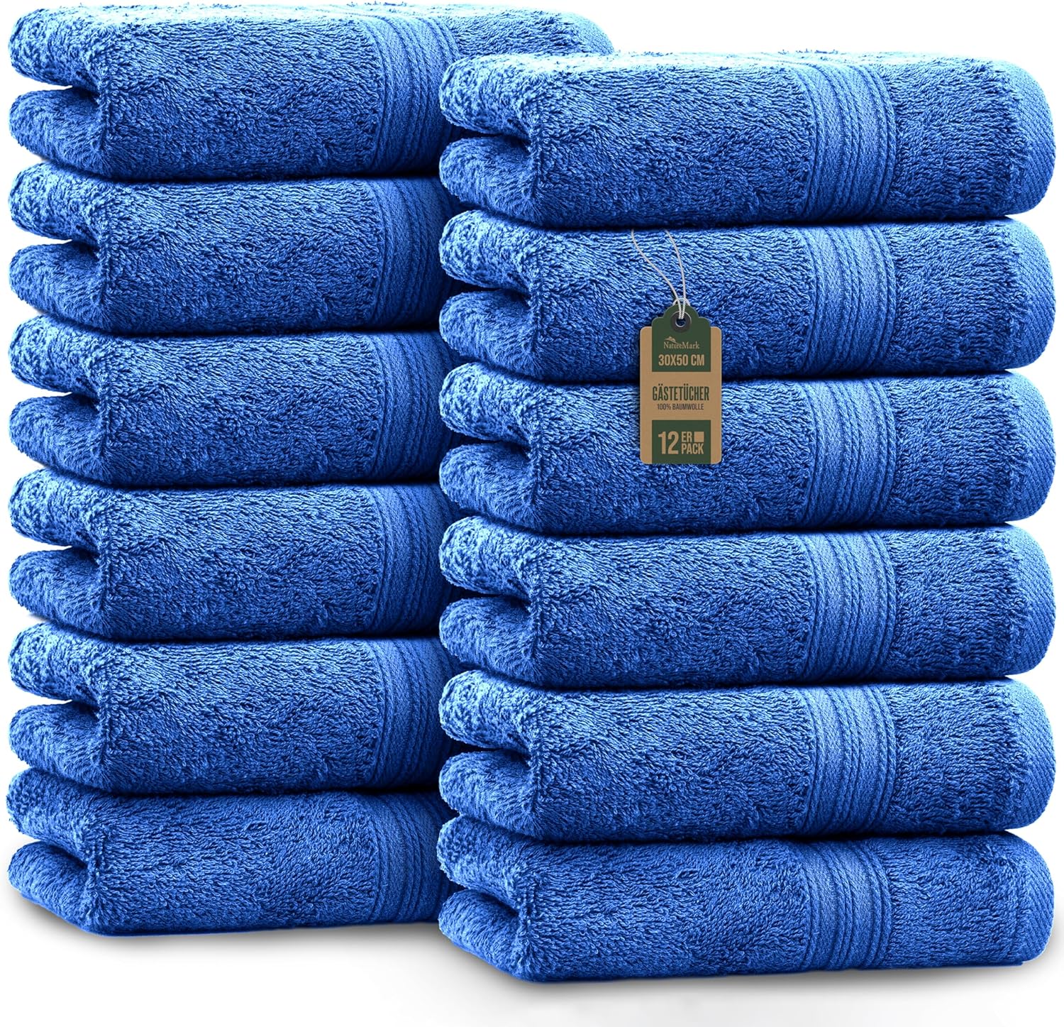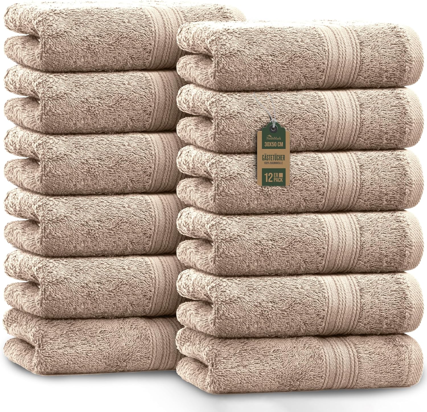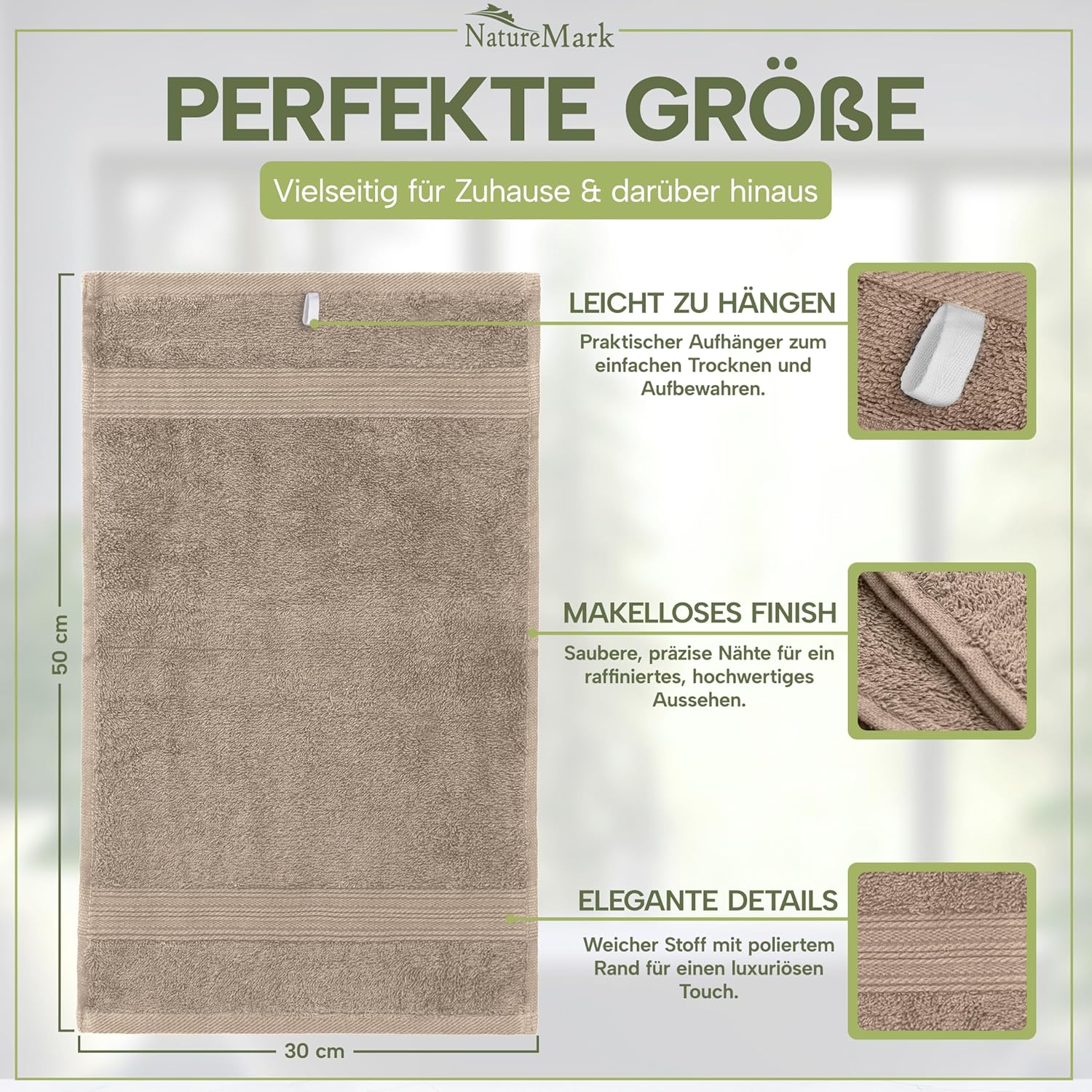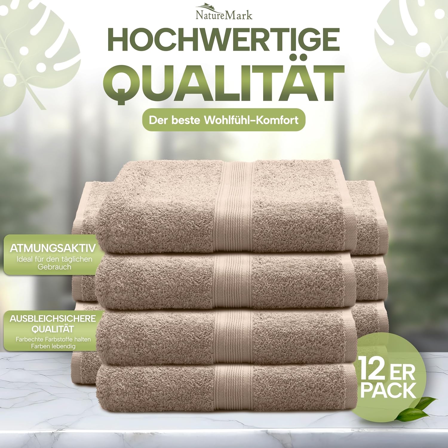 NatureMark NM-HT0816 Хавлиени кърпи за гости, пакет от 12, 30 x 50 см, 100% памук