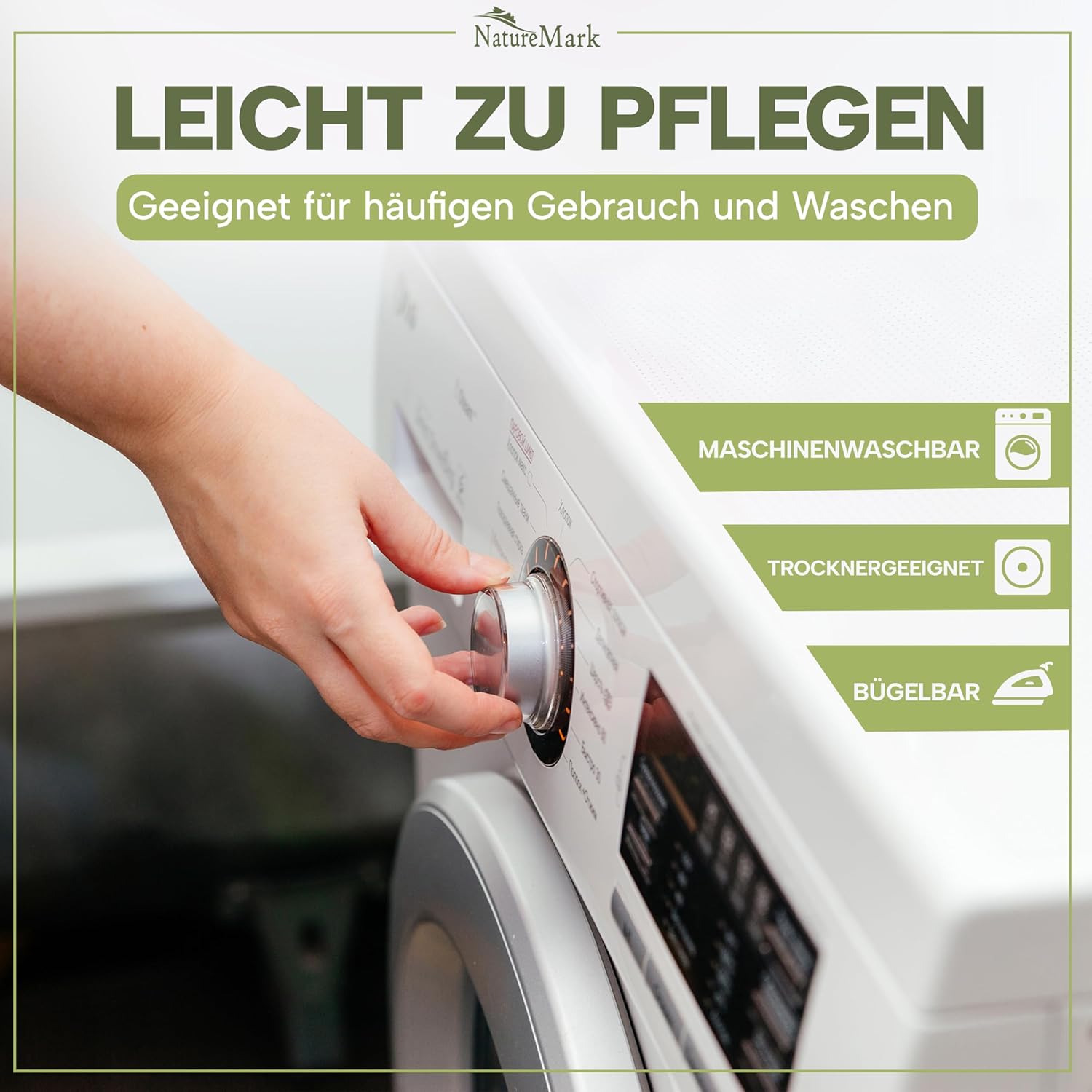 • Пере се на 60°C, може да се суши в сушилня.