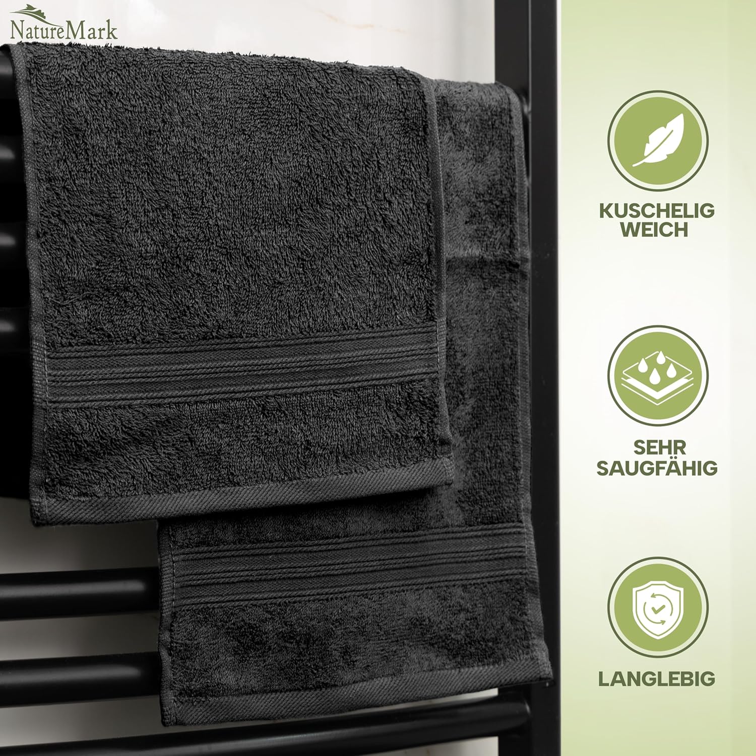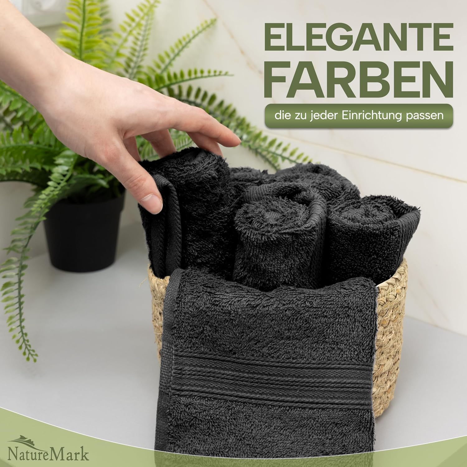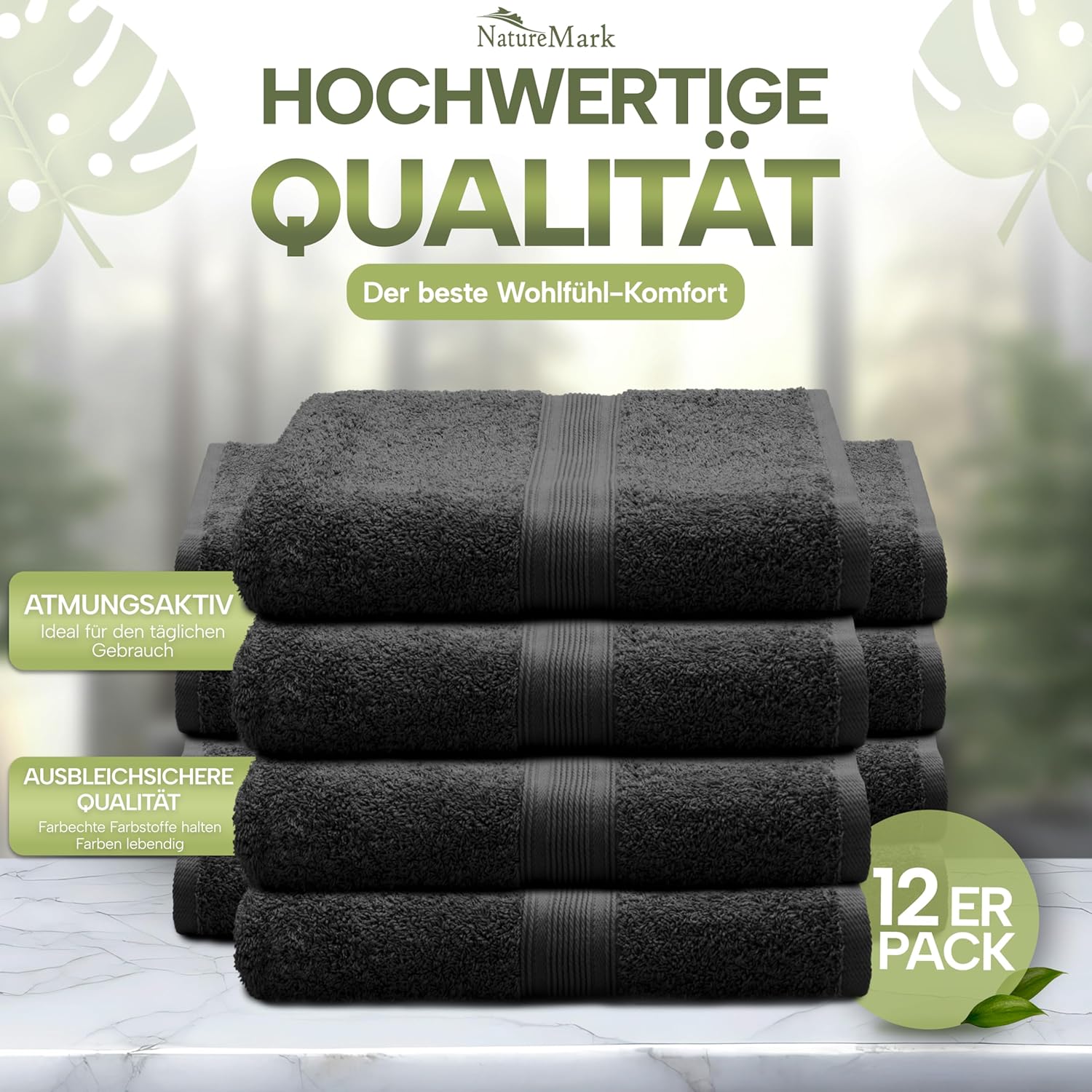 NatureMark NM-HT0816 Хавлиени кърпи за гости, пакет от 12, 30 x 50 см, 100% памук