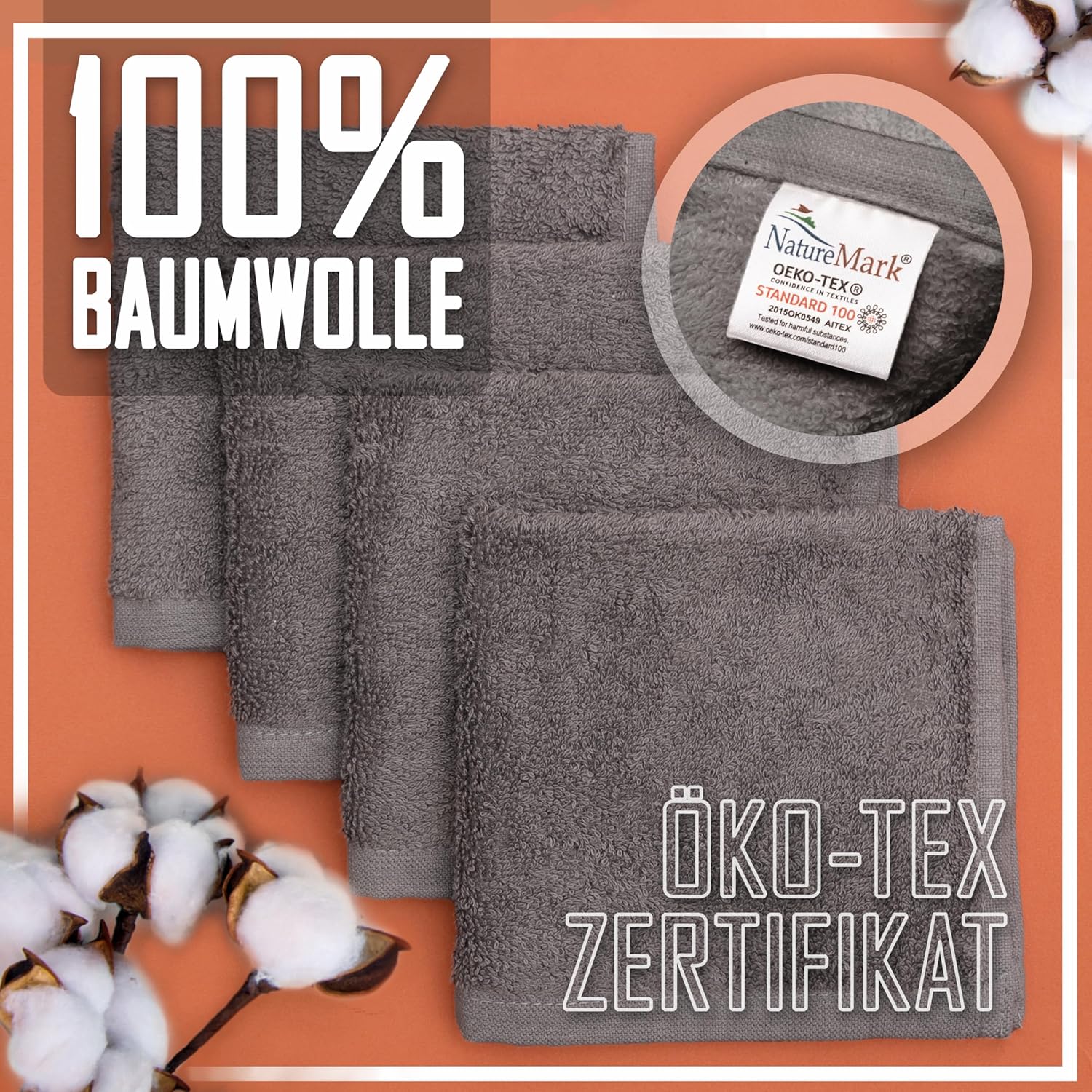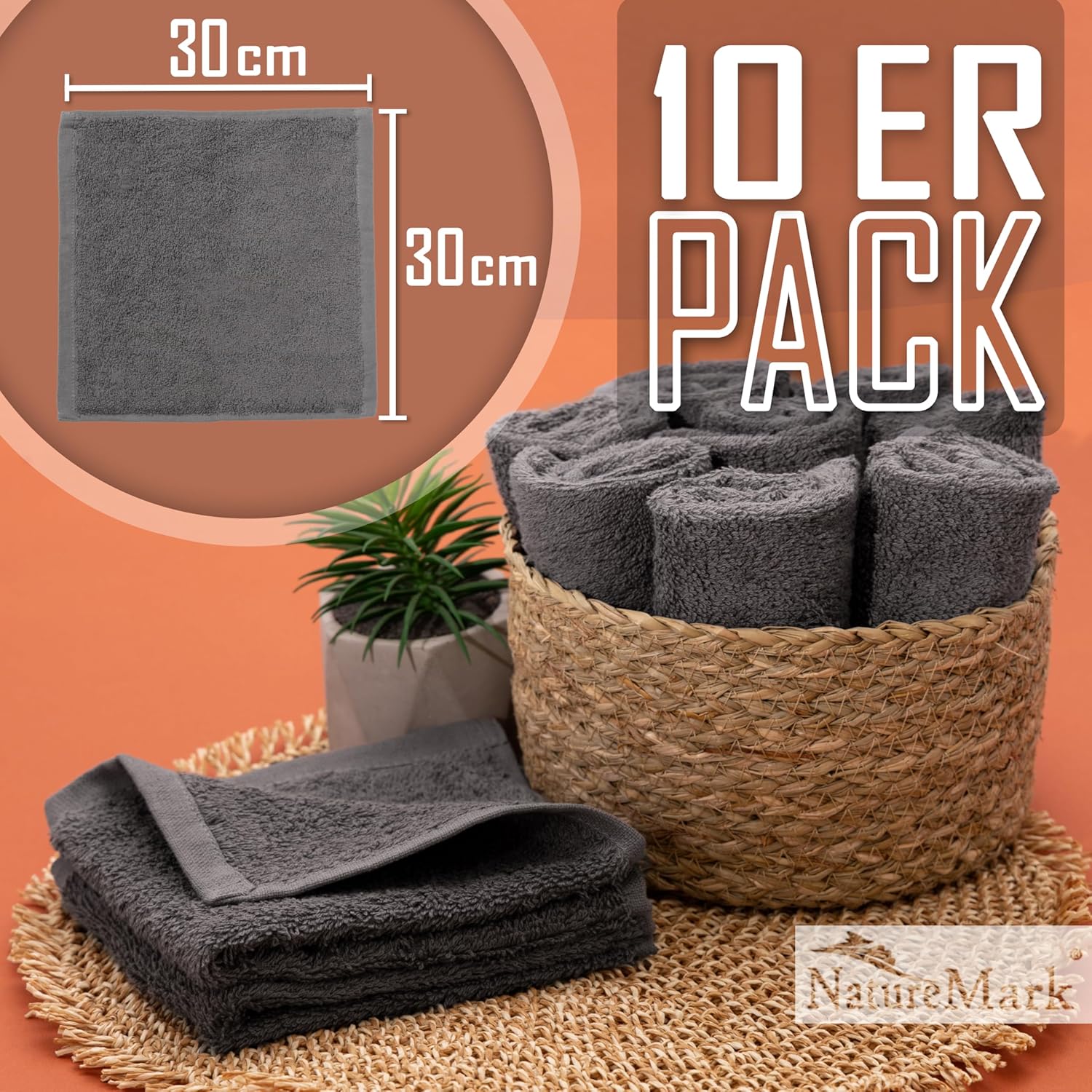 NatureMark Пакет от 10 кърпи за лице, 100% памучни хавлиени кърпи за сапун, размер 30 x 30 см, хавлиени фланели в пакет от 10