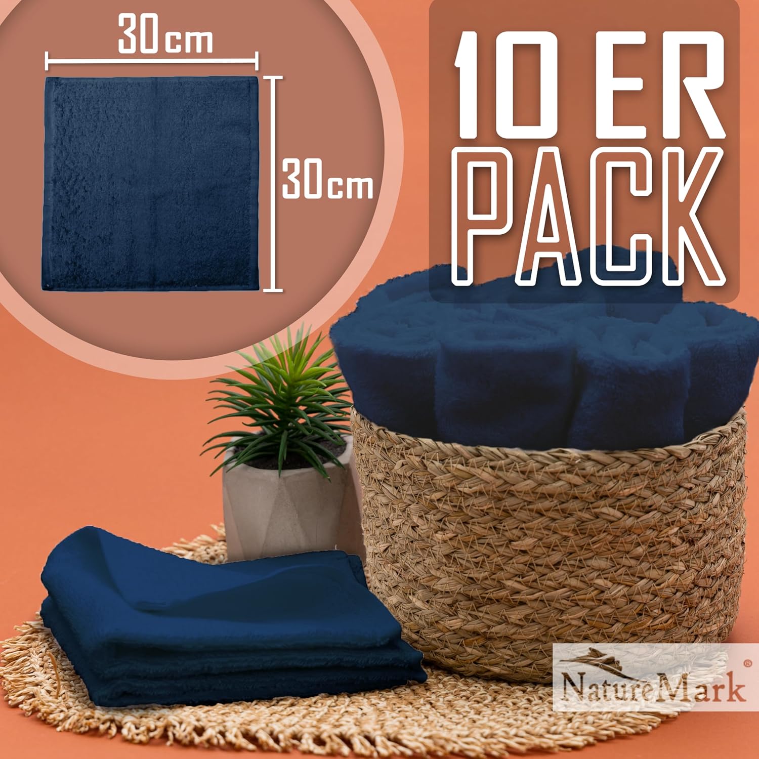 NatureMark Пакет от 10 кърпи за лице, 100% памучни хавлиени кърпи за сапун, размер 30 x 30 см, хавлиени фланели в пакет от 10