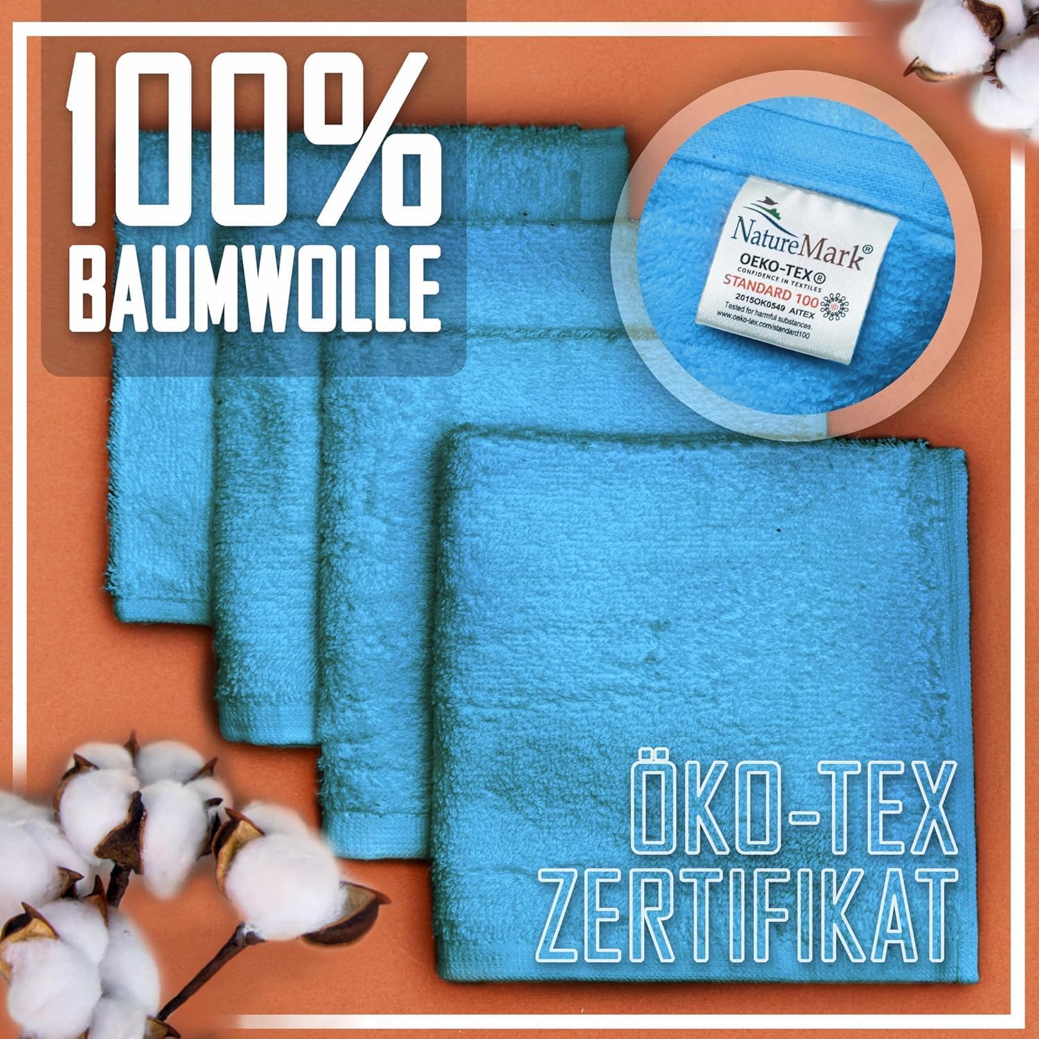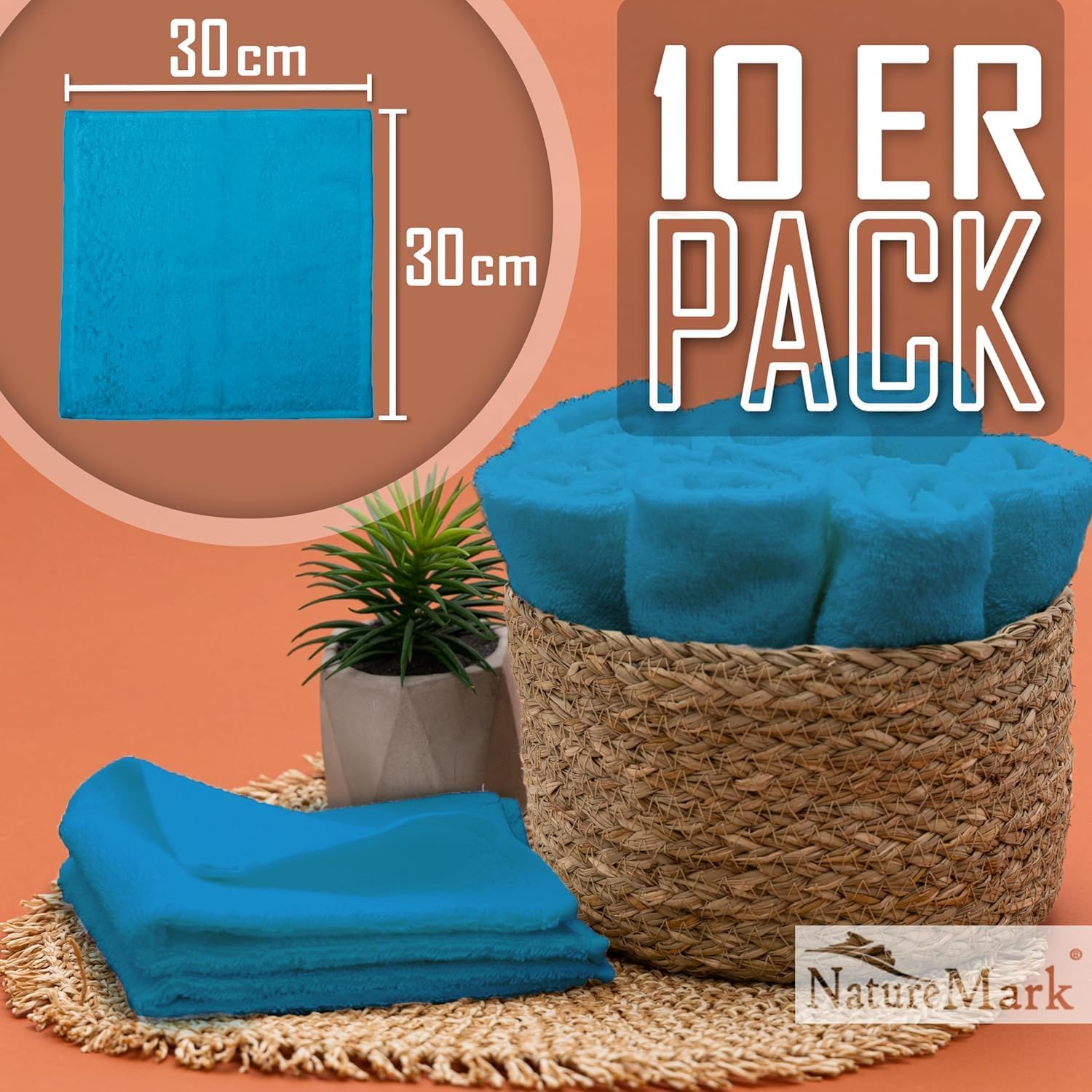 NatureMark Пакет от 10 кърпи за лице, 100% памучни хавлиени кърпи за сапун, размер 30 x 30 см, хавлиени фланели в пакет от 10