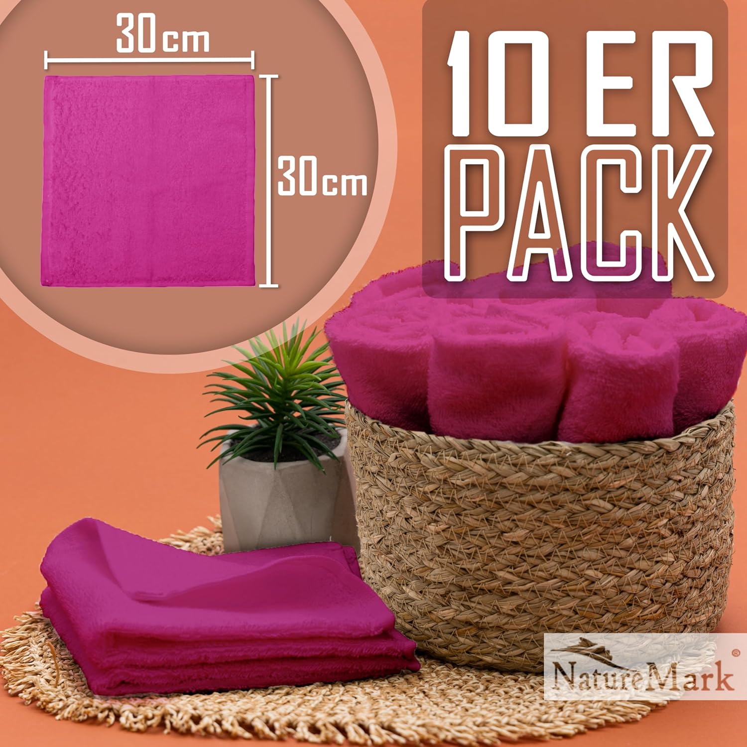 NatureMark Пакет от 10 кърпи за лице, 100% памучни хавлиени кърпи за сапун, размер 30 x 30 см, хавлиени фланели в пакет от 10