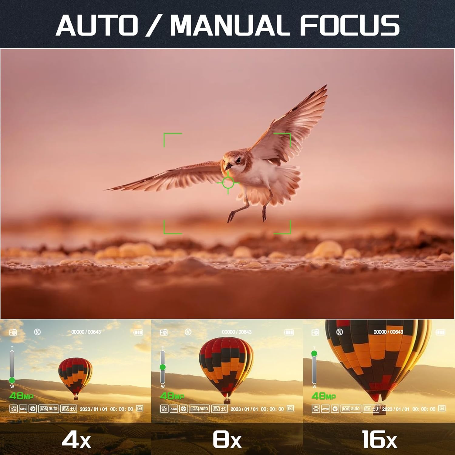 • 5K система за предаване в реално време: 3-инчов въртящ се на 180° екран с WiFi връзка, дистанционно управление чрез приложение за незабавно предаване на 48MP изображения с висока резолюция.