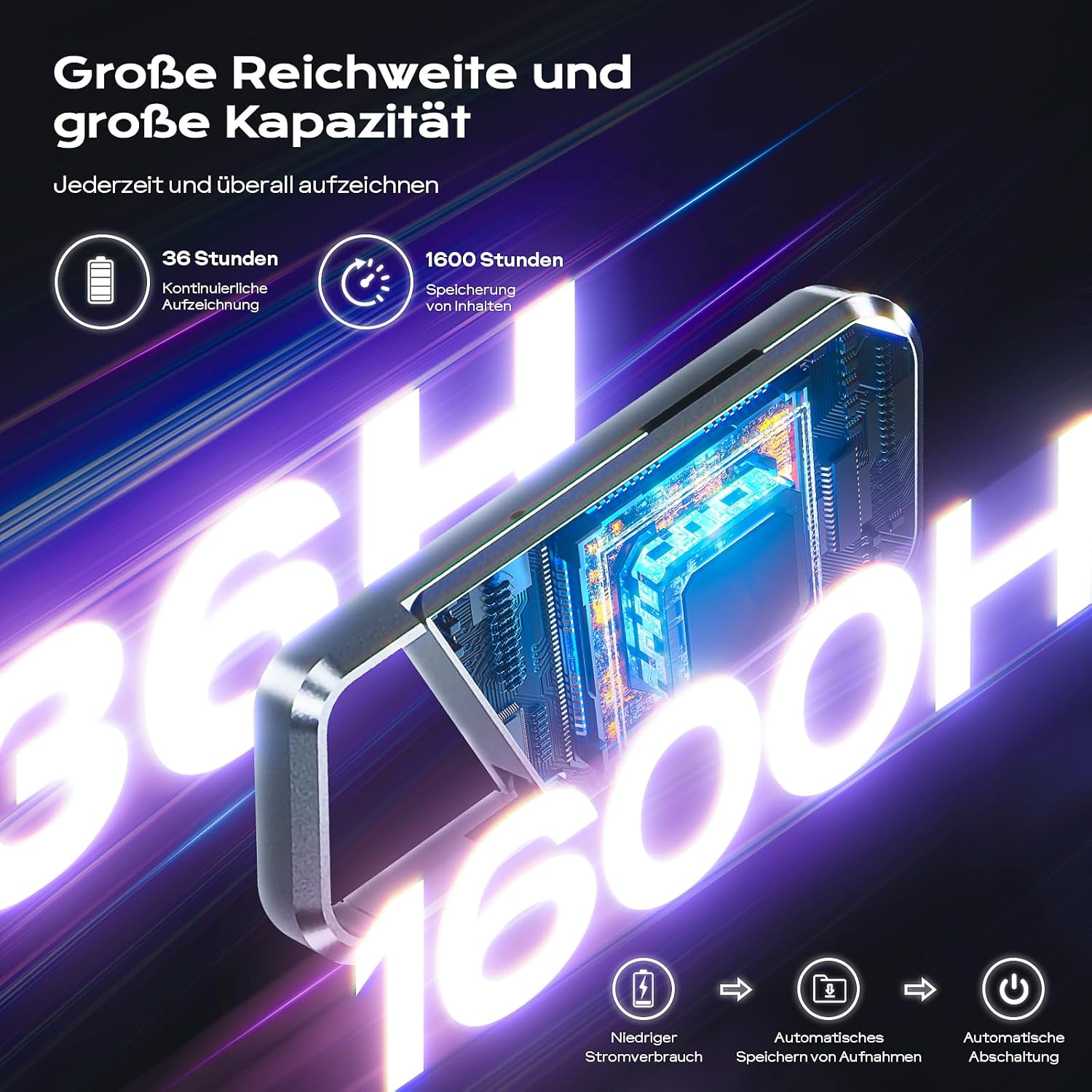 • Здрав и издръжлив: Високопроизводителната батерия позволява 36 часа непрекъснат запис, бързото зареждане спестява време за чакане. Устойчив на падане корпус, без страх от сурови условия на околната среда или случайни сблъсъци в ежедневието.