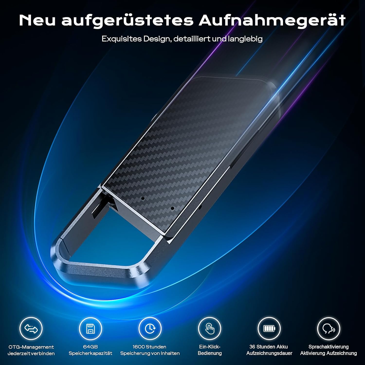 NekSide Гласов рекордер с разпознаване на глас - Диктофон, Мобилен рекордер с DSP3.0 OTG съвместимост, 64GB/1600h съдържание, Дълъг запис на глас, Мини устройство за диктовка за интервюта/срещи