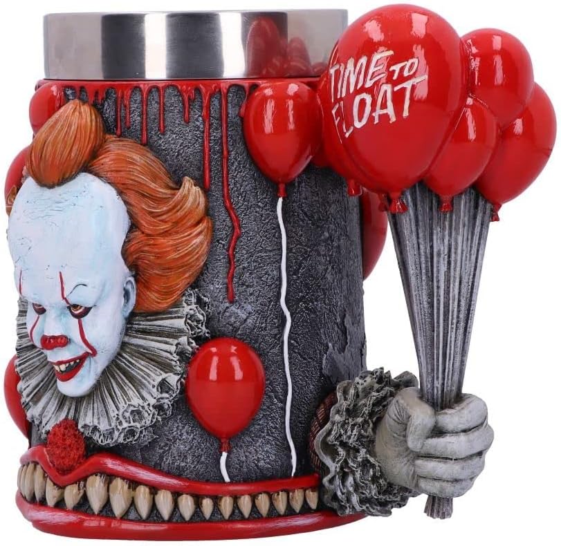В основата на чашата е изобразена ръката на Пениуайз, стискаща колекция от червени балони, докато върху чашата Пениуайз, облечен в разпознаваемия си клоунски костюм, се навежда напред и ви гледа с пронизващите си жълти очи и злобна усмивка. Някои от балоните около чашата носят известния цитат на Пениуайз „Време е да се носиш“, който е изобразен и на дръжката на чашата.