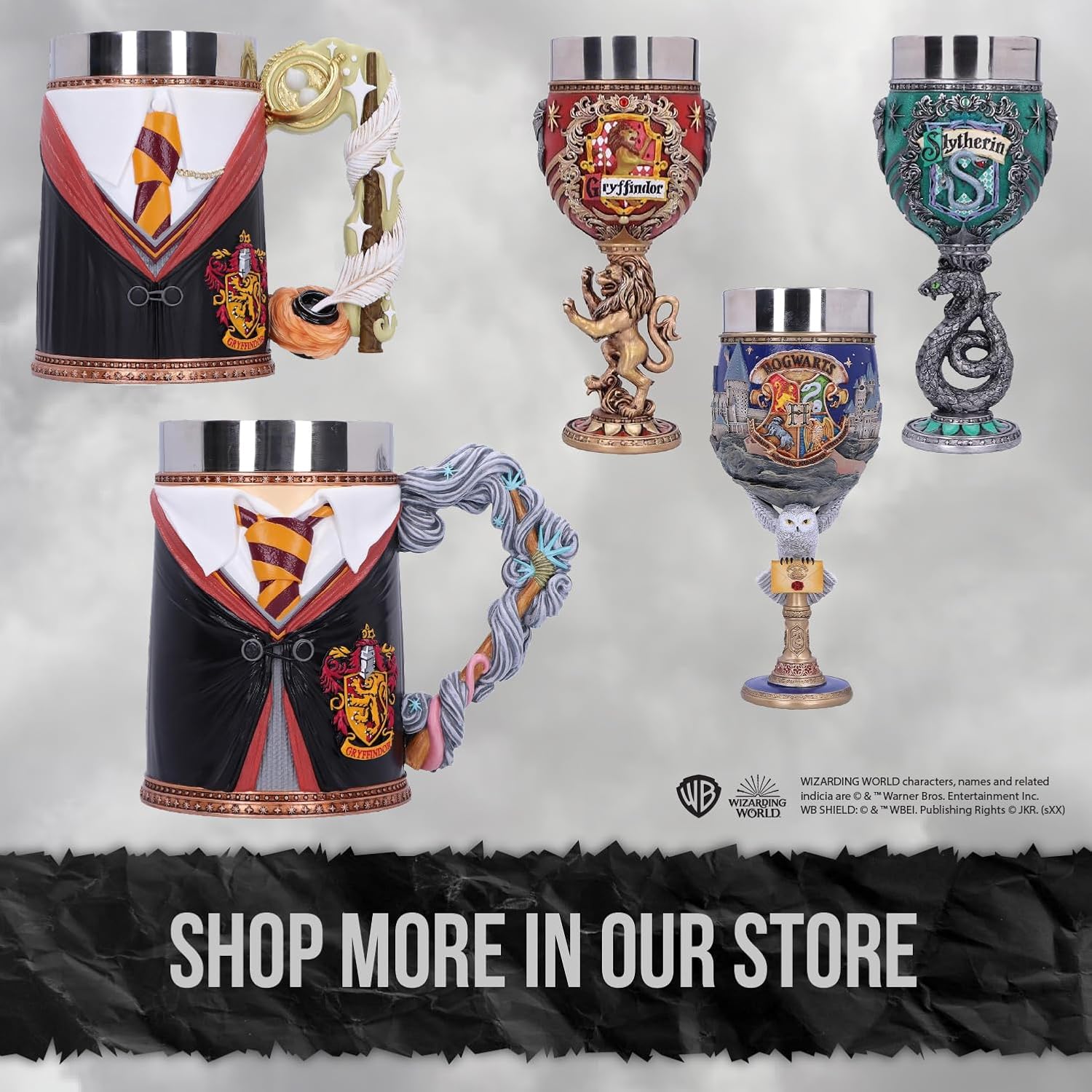 Покажете страстта си към най-доброто училище за магьосничество и вълшебство в света с тези официално лицензирани колекционерски кани и чаши, проектирани от вътрешния дизайнерски екип на Nemesis Now. Отлети от най-фината смола, преди да бъдат експертно ръчно боядисани, те са идеалното допълнение към всяка магьосническа колекция и могат да се ползват както от вещици, магьосници, така и от мъгъли.