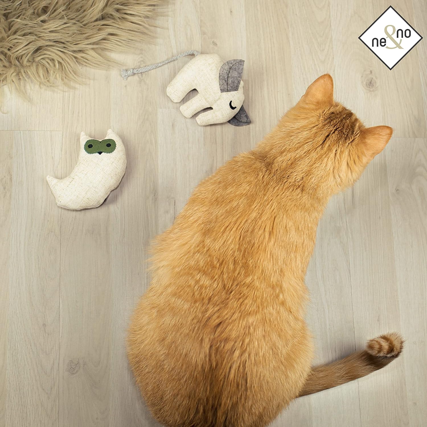 ne&no Играчка за котки с котешка трева, Комплект от 3 играчки-животни с 9 торбички с котешка трева (по 1,5 г), Играчка за котки с котешка трева, Пълняема играчка за котки