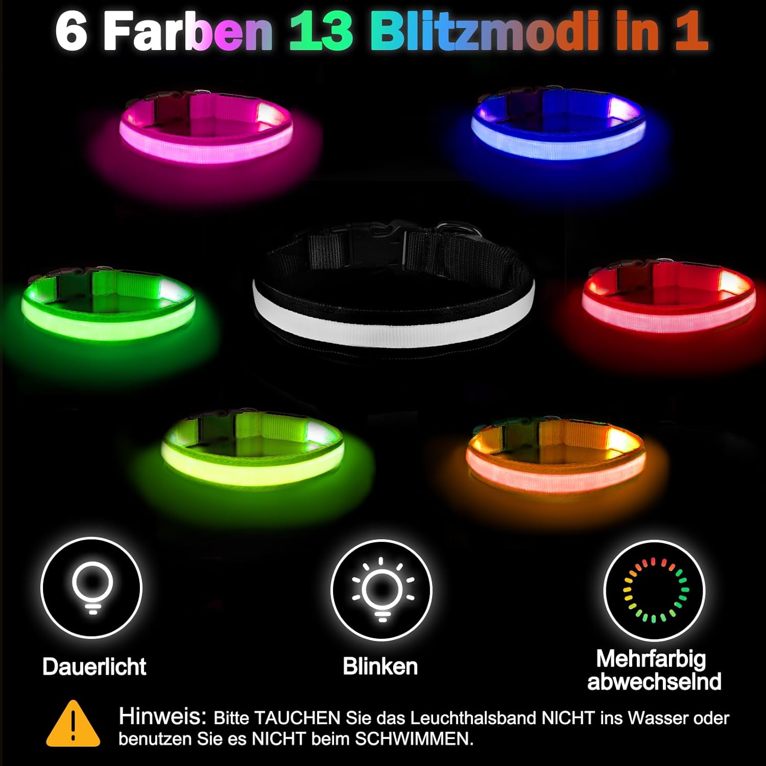 Nepfaivy Светещ нашийник за кучета с USB презареждаем - Светещ нашийник за кучета с регулируема дължина за средни кучета LED нашийник за кучета с 6 променящи се цвята за нощна безопасност (многоцветен S)