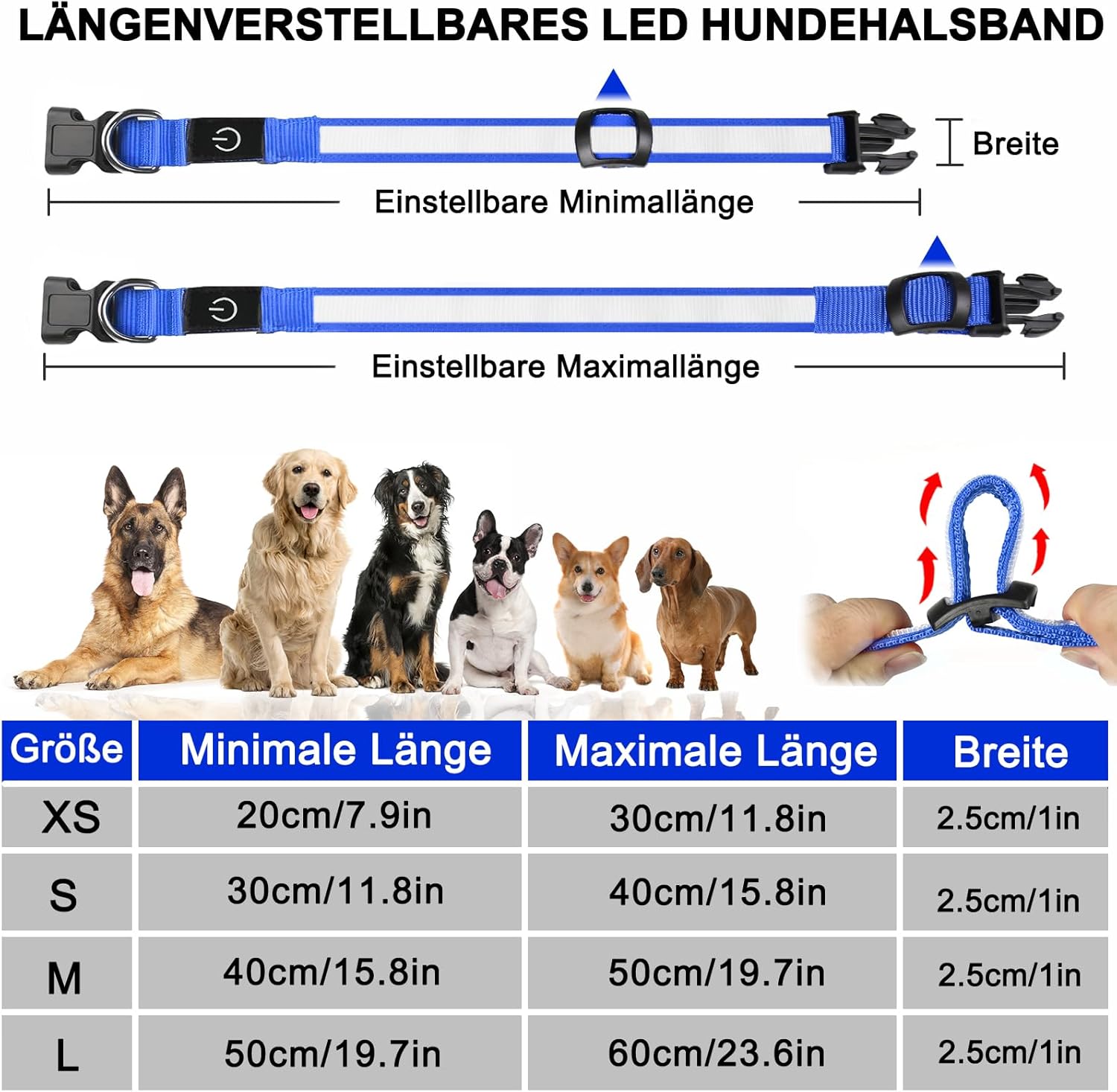 Nepfaivy Светлинен нашийник за кучета с USB презареждаем - Светлинен нашийник за кучета с регулируема дължина за средни до големи кучета, LED нашийник за кучета с 3 режима на осветление за нощна безопасност (син-XS)