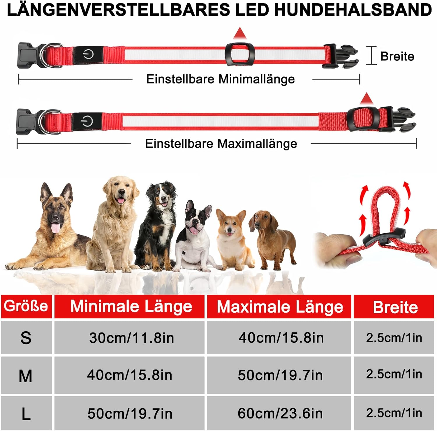 Nepfaivy Светлинен нашийник за кучета с USB презареждаем - Светлинен нашийник за кучета с регулируема дължина за средни кучета LED нашийник за кучета с 3 режима на осветление за нощна безопасност (червен)