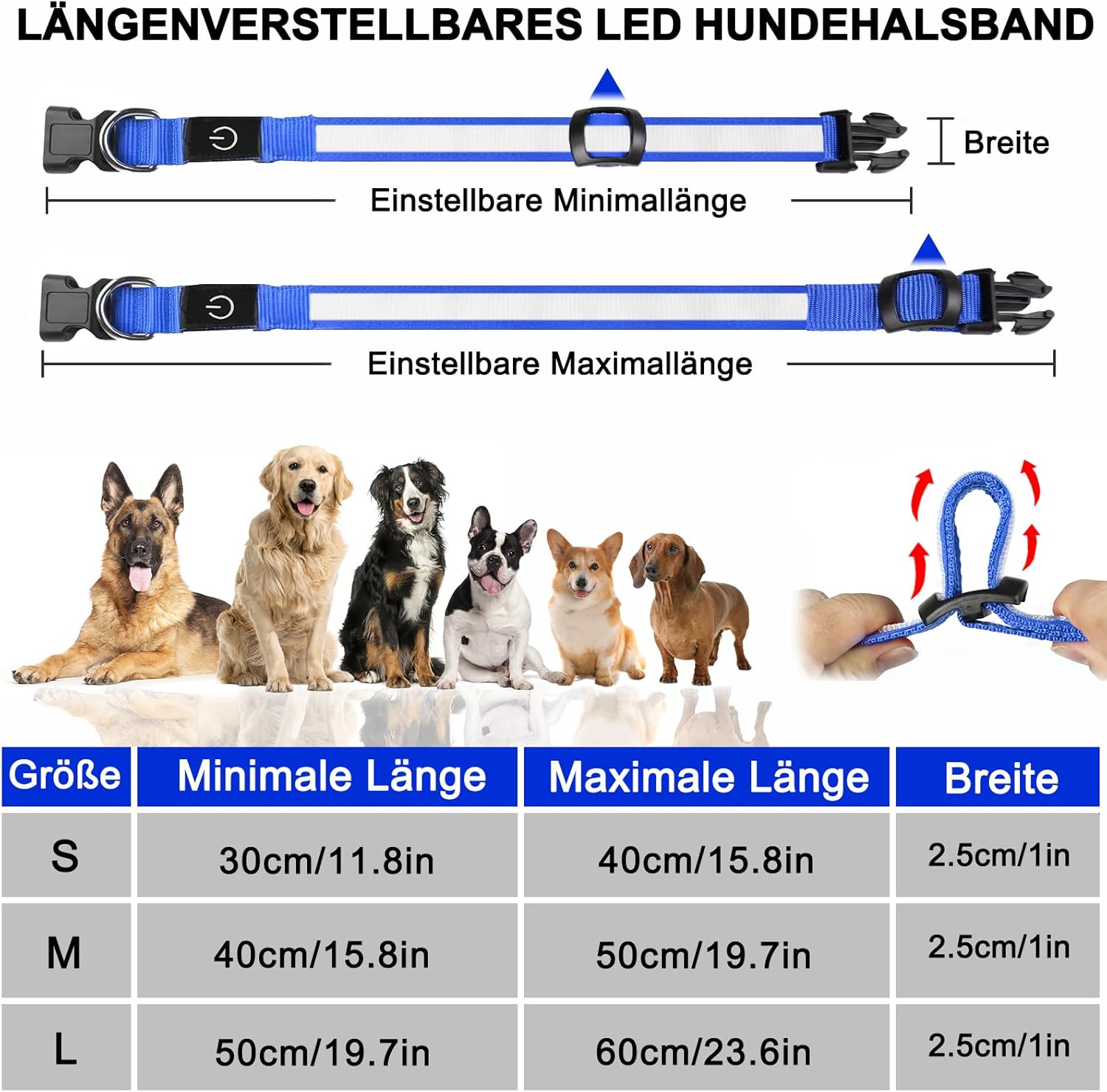 Nepfaivy Светлинен нашийник за кучета с USB презареждаем - Светлинен нашийник за кучета с регулируема дължина за средни кучета LED нашийник за кучета с 3 режима на осветление за нощна безопасност (син S)