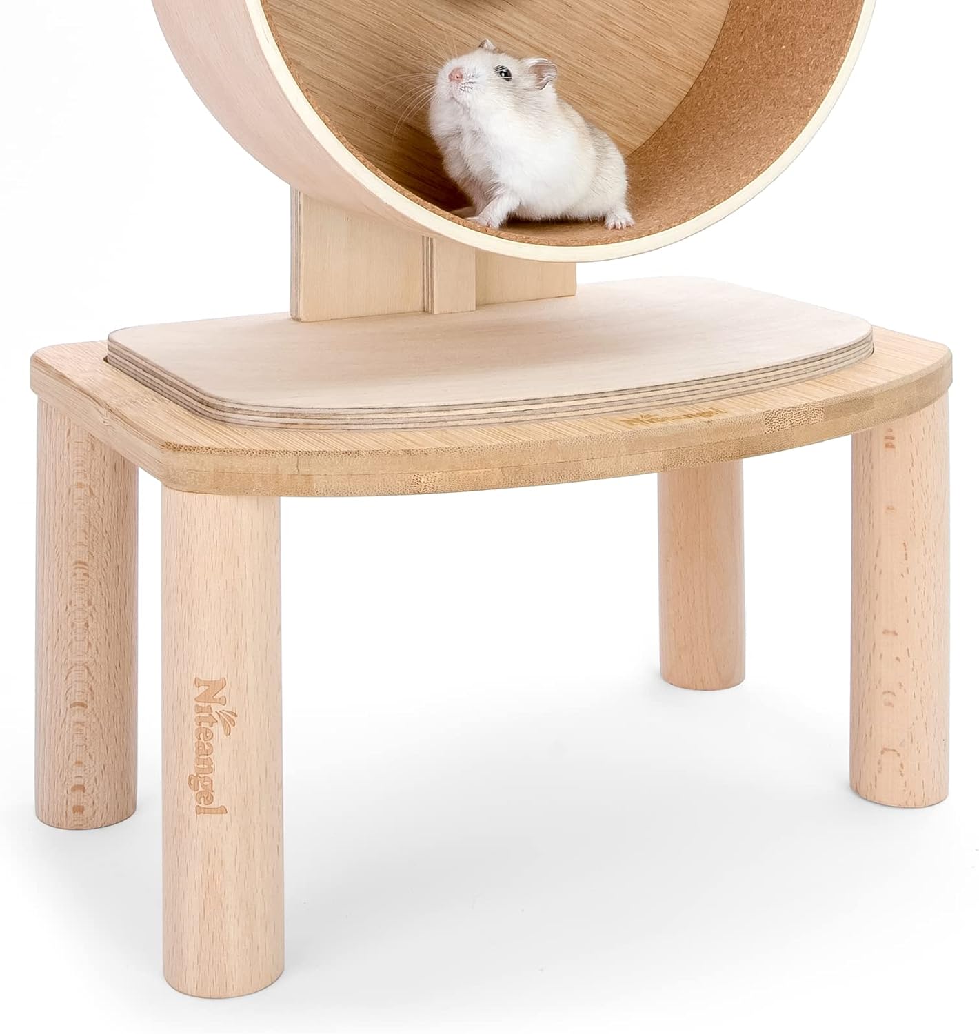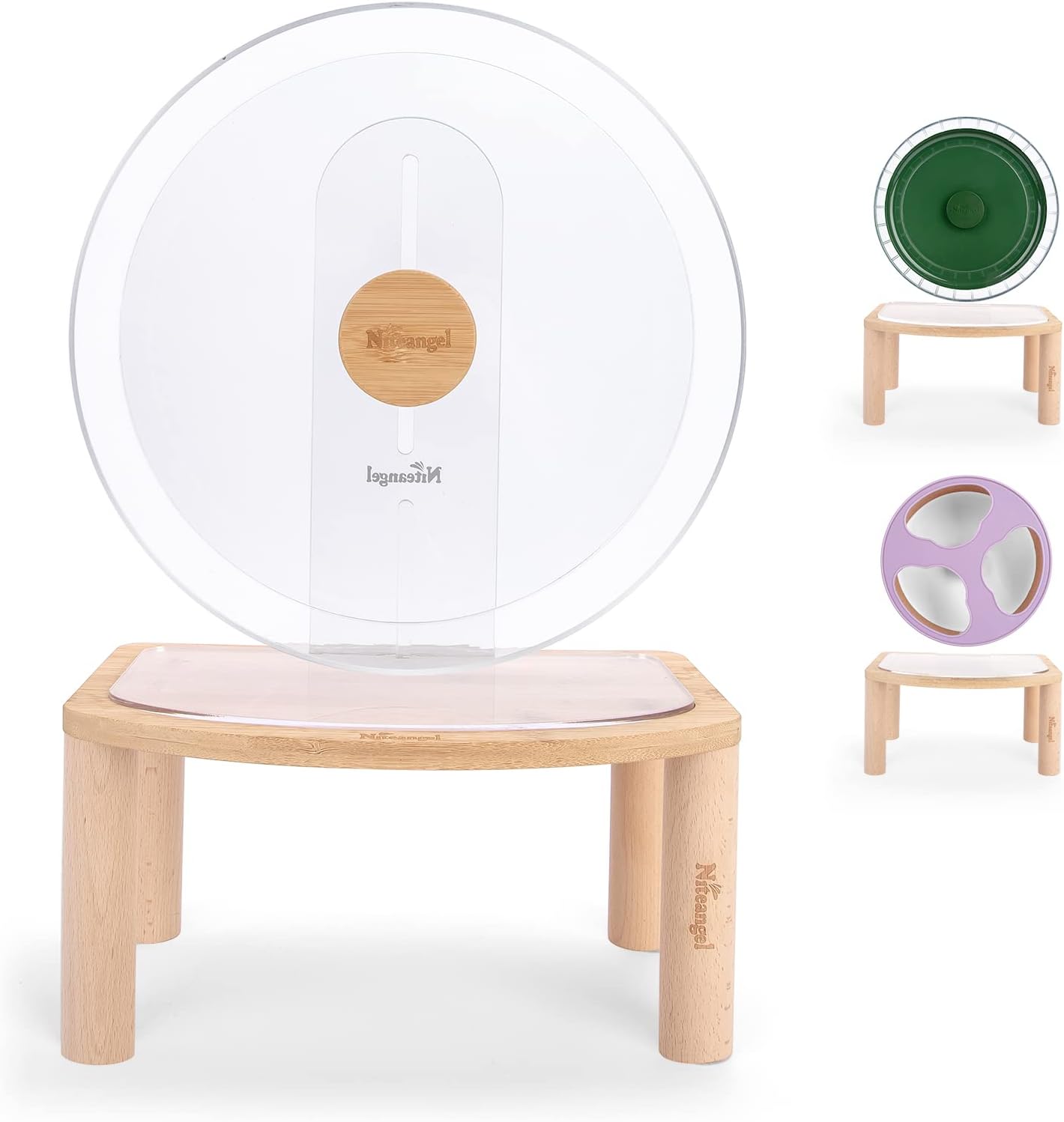 • Необходима платформа за колела от серията Niteangel - Повдига височината на колелото за хамстери, когато поставяте клетката/местообитанието за хамстери, а също така осигурява здрава основна плоча за поставяне на колелото. Изработено от бамбук и бук. Моля, следвайте инструкциите за монтаж преди употреба.