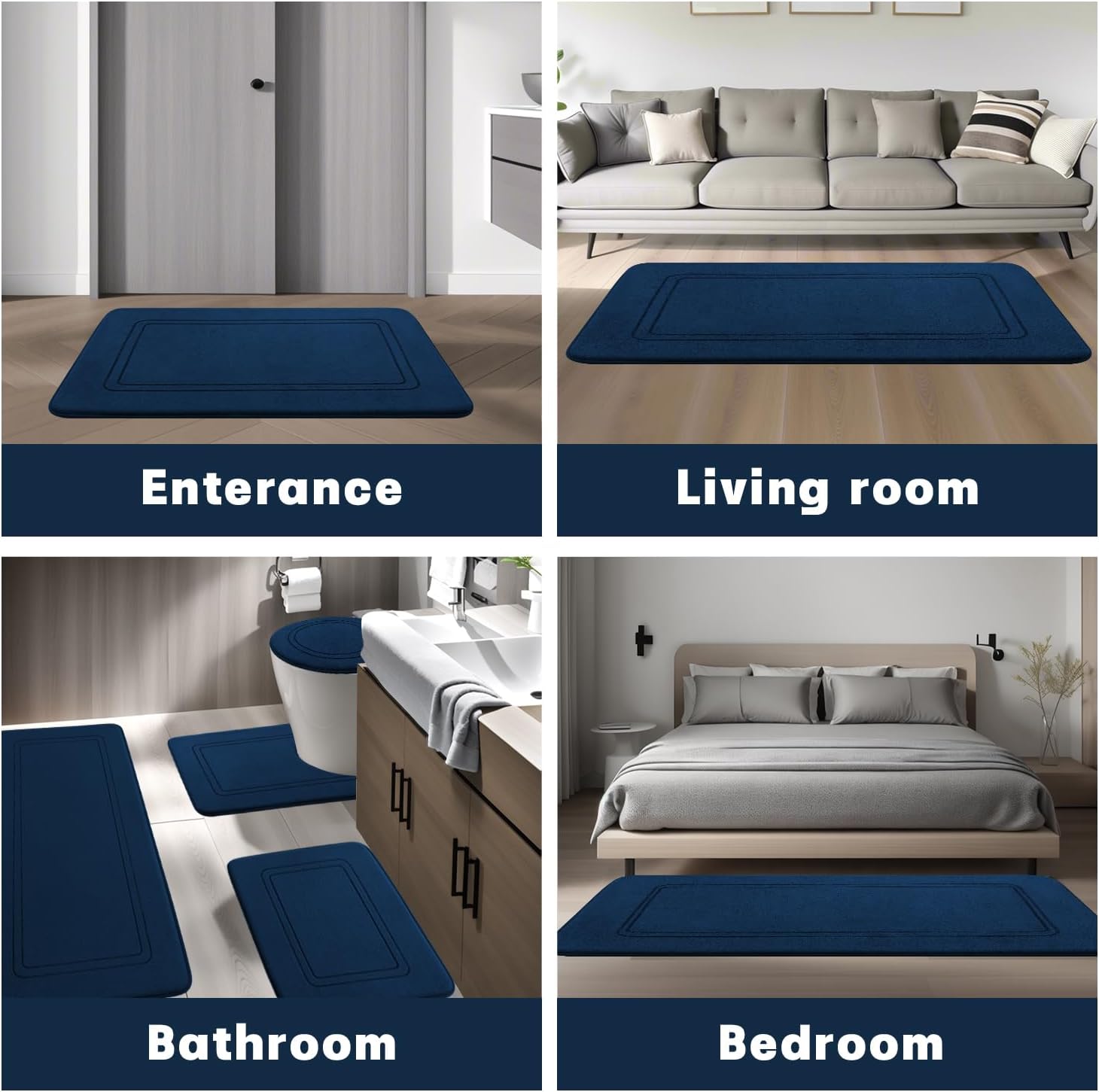 • Супер абсорбиране на вода: Интензивните малки дупки върху по-дебелата мемори пяна помагат за връщането на килимите, също така задвижват въздушния поток през повърхността, абсорбират бързо водата и я разпределят по-бързо. Дръжте банята си далеч от вода и я поддържайте чиста всеки ден.