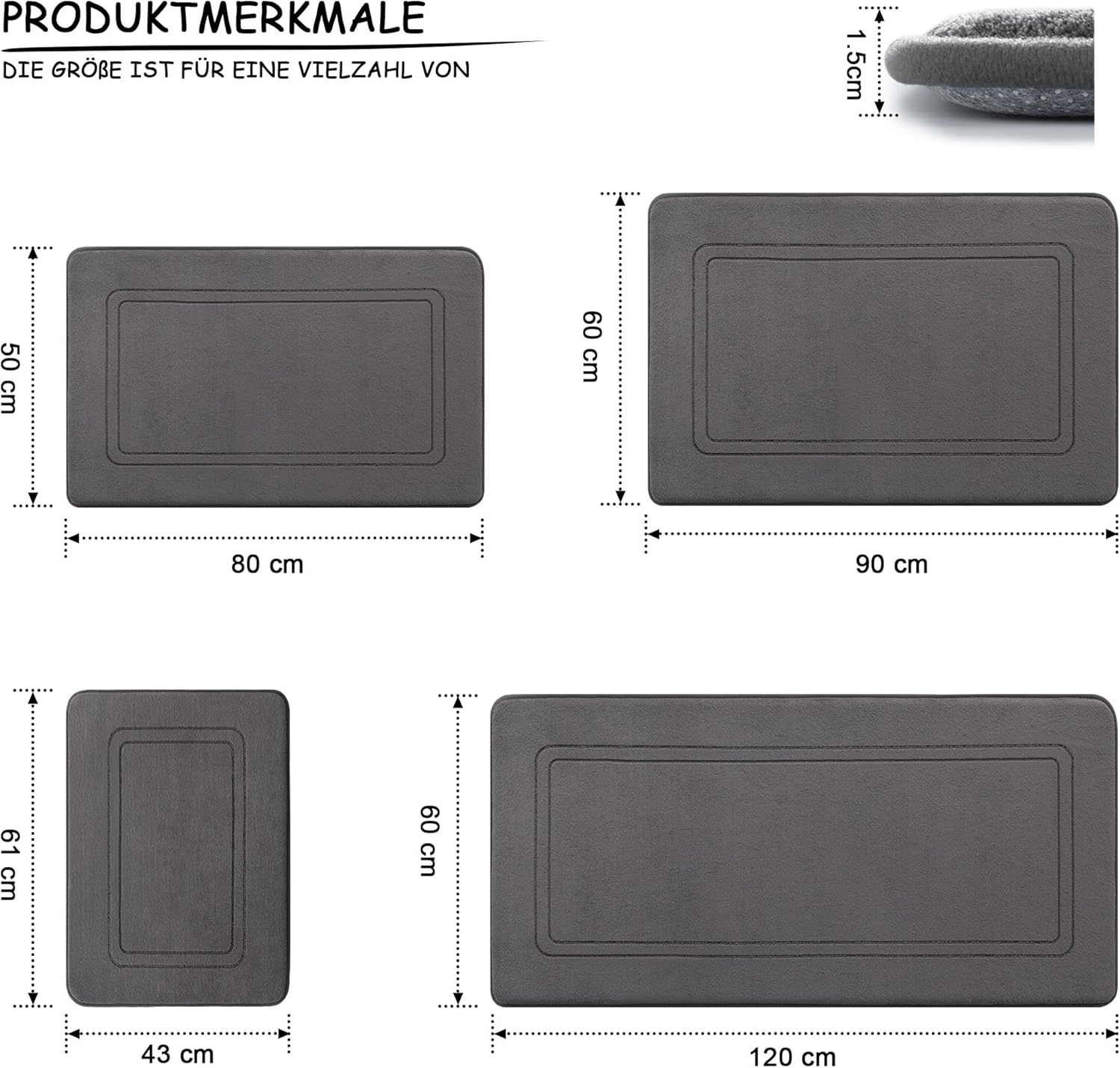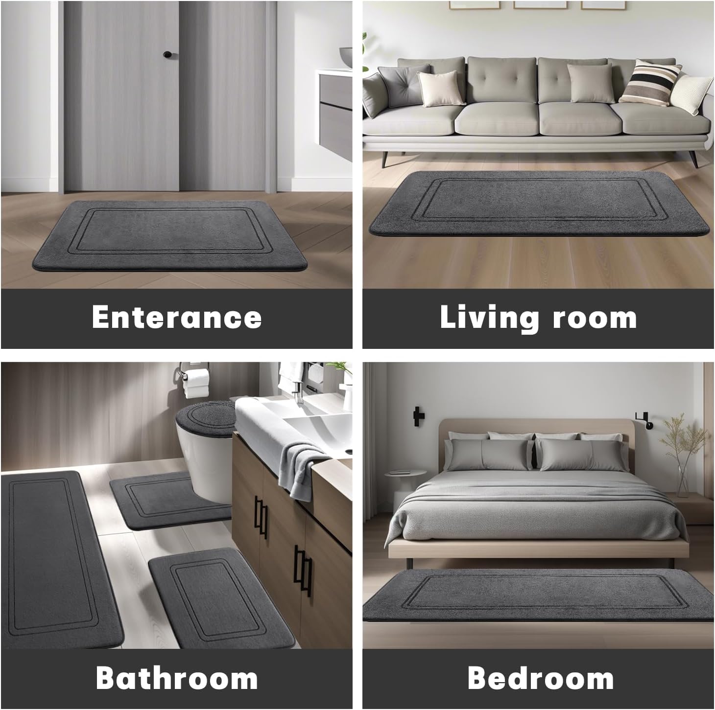 • Комплекти килими за баня: комплект тъмносиви килими за баня от 3 части, включително постелки с размери 43 см x 61 см и 51 см x 81 см, U-образен килим за плот 51 см x 61 см. В този магазин ще намерите комплект килими за баня на добри цени. Идеални за баня, тоалетка, вила, главна баня, детска баня, хол и т.н.