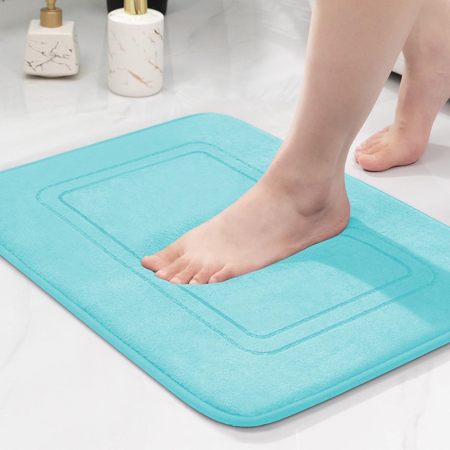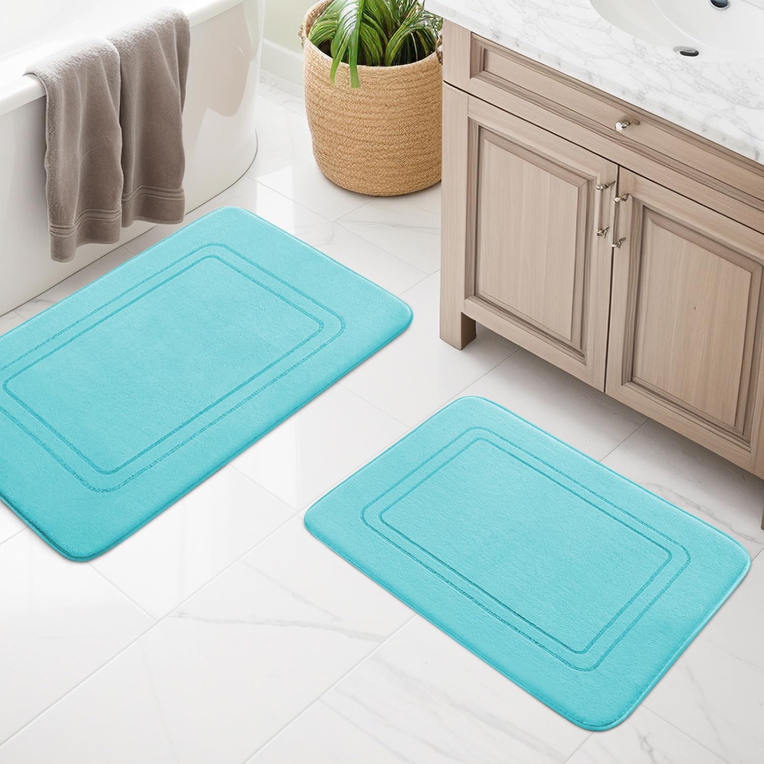 • Супер абсорбиране на вода: Интензивните малки дупки върху по-дебелата мемори пяна помагат за връщането на килимите, също така задвижват въздушния поток през повърхността, абсорбират бързо водата и я разпределят по-бързо. Дръжте банята си далеч от вода и я поддържайте чиста всеки ден.