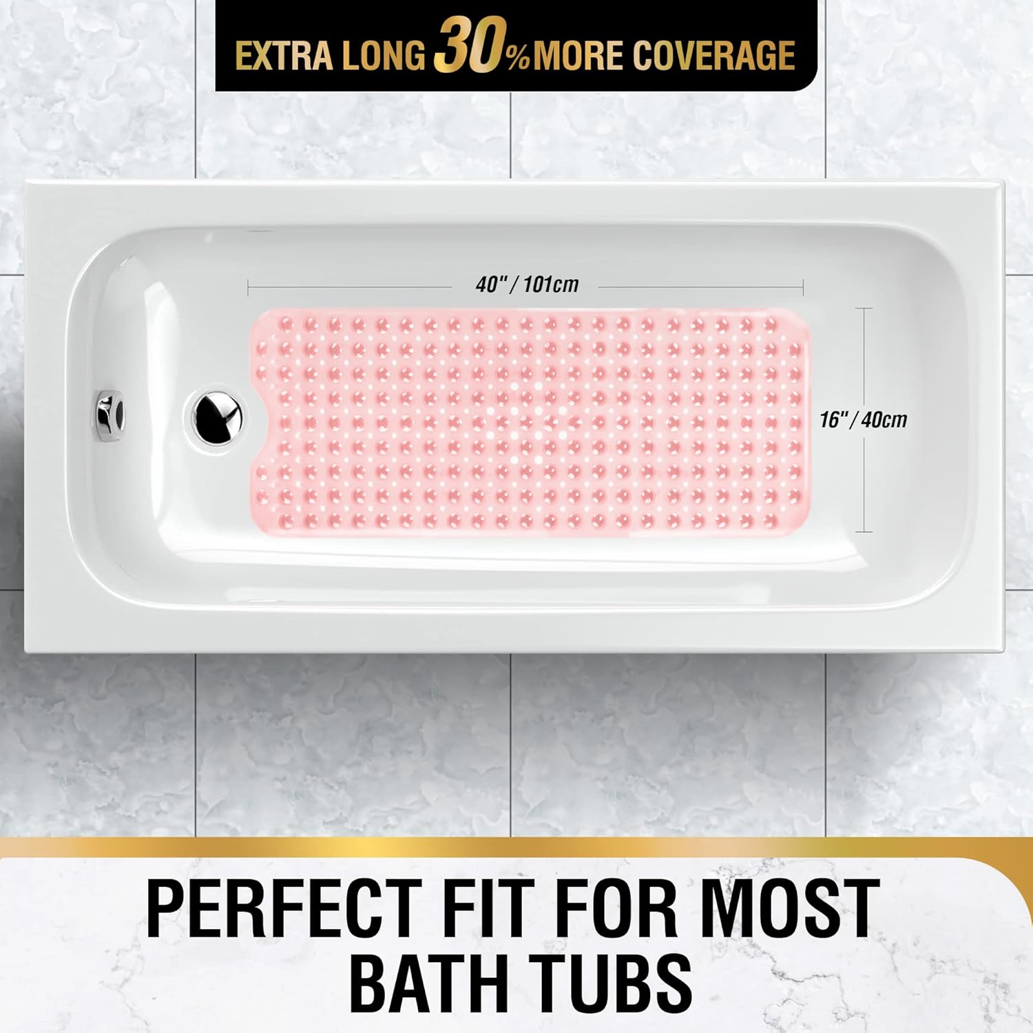 Неплъзгаща се постелка за баня Hitslam, 101 x 40 см, Екстра дълга неплъзгаща се постелка, Вана, Постелка за душ, Неплъзгаща се, Без BPA, Устойчива на мухъл и Може да се пере в пералня, Розова