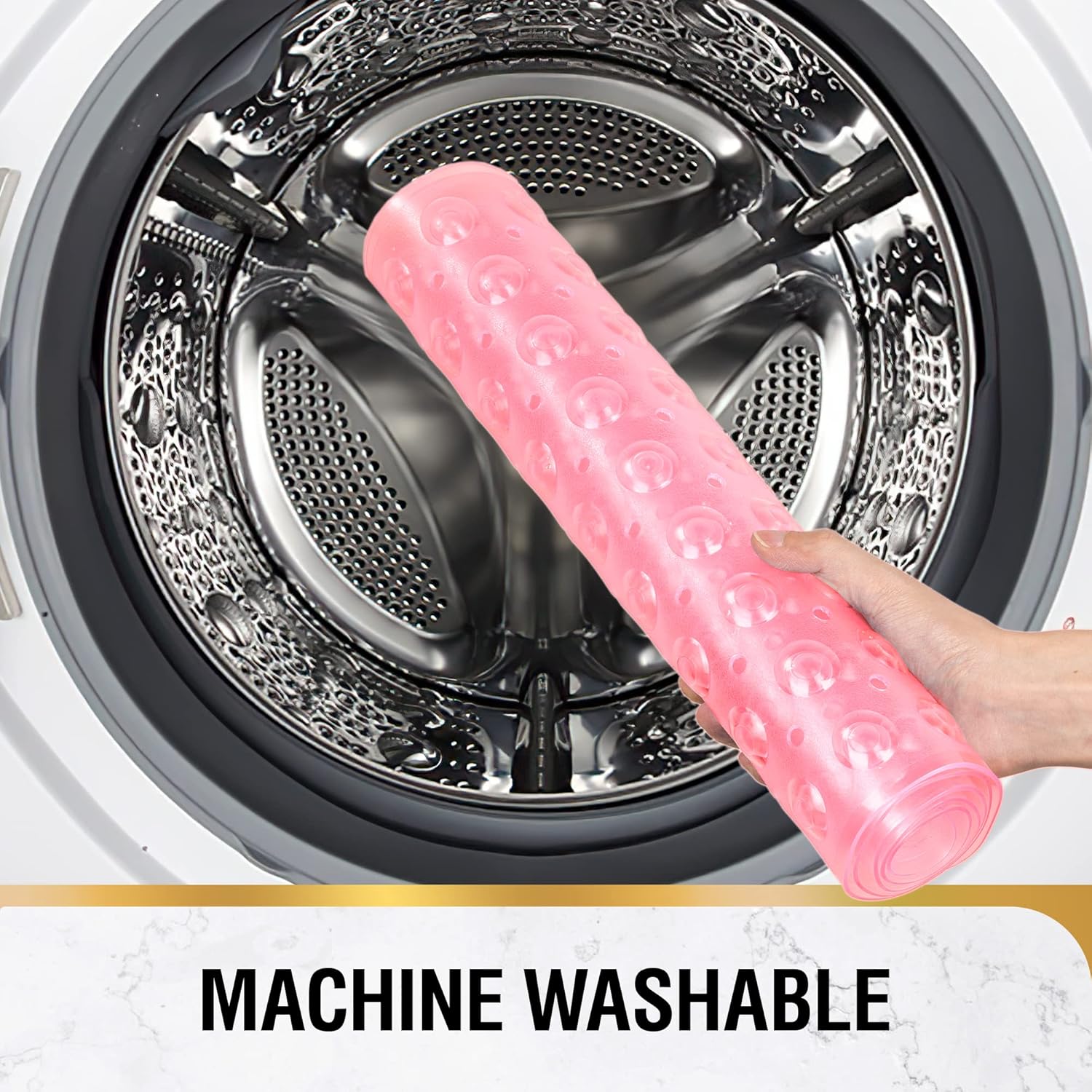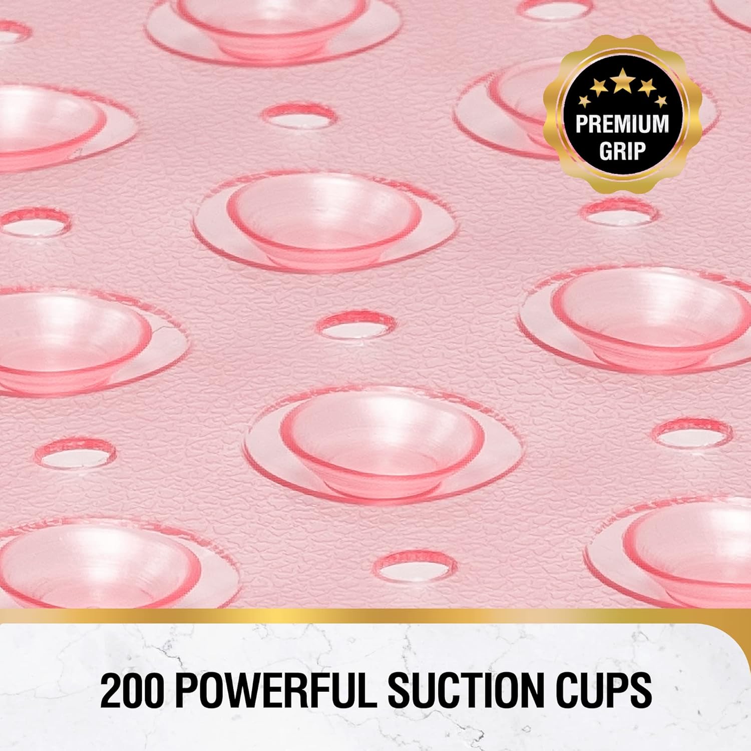 • Неплъзгаща се постелка с ултрасилно задържане: Нашата неплъзгаща се постелка за баня е снабдена с 200 здрави лепящи вендузи, които я държат здраво на място върху гладки, чисти вани и душове. Текстурата на горната част на постелката за баня увеличава триенето, така че да не се подхлъзвате или падате във ваната.