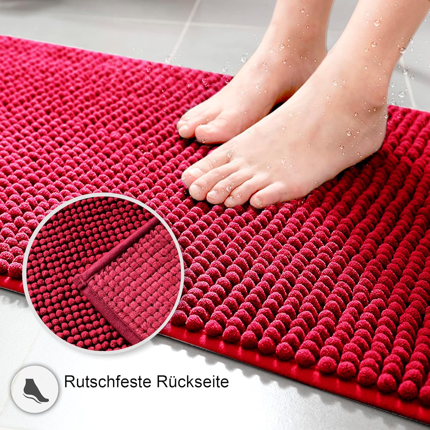 Гърбът на постелките за баня Decomira е противоплъзгащ благодарение на специалната обработка. Постелките за баня минимизират риска от подхлъзване дори върху мокри подове.