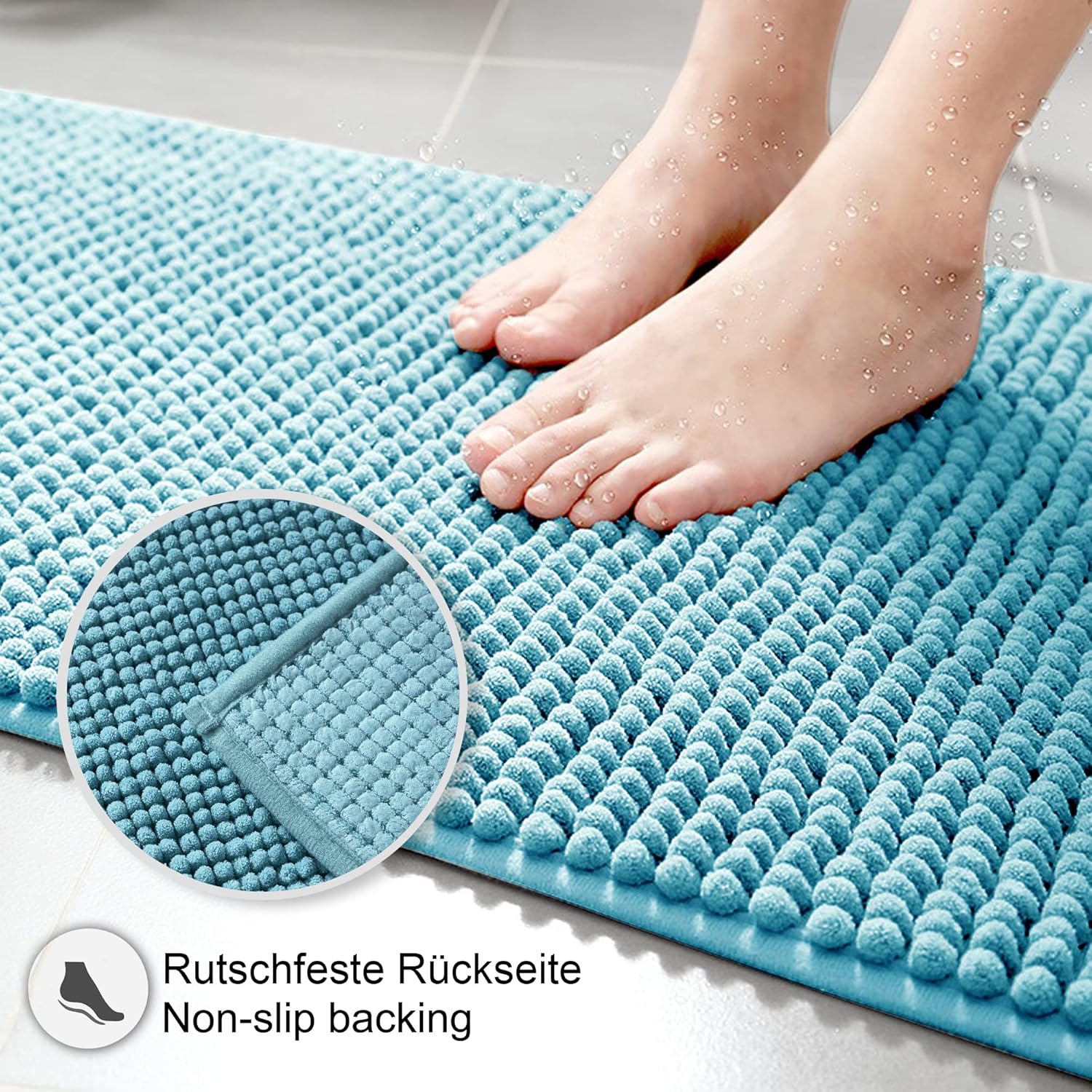 Гърбът на постелките за баня Decomira е противоплъзгащ благодарение на специалната обработка. Постелките за баня минимизират риска от подхлъзване дори върху мокри подове.